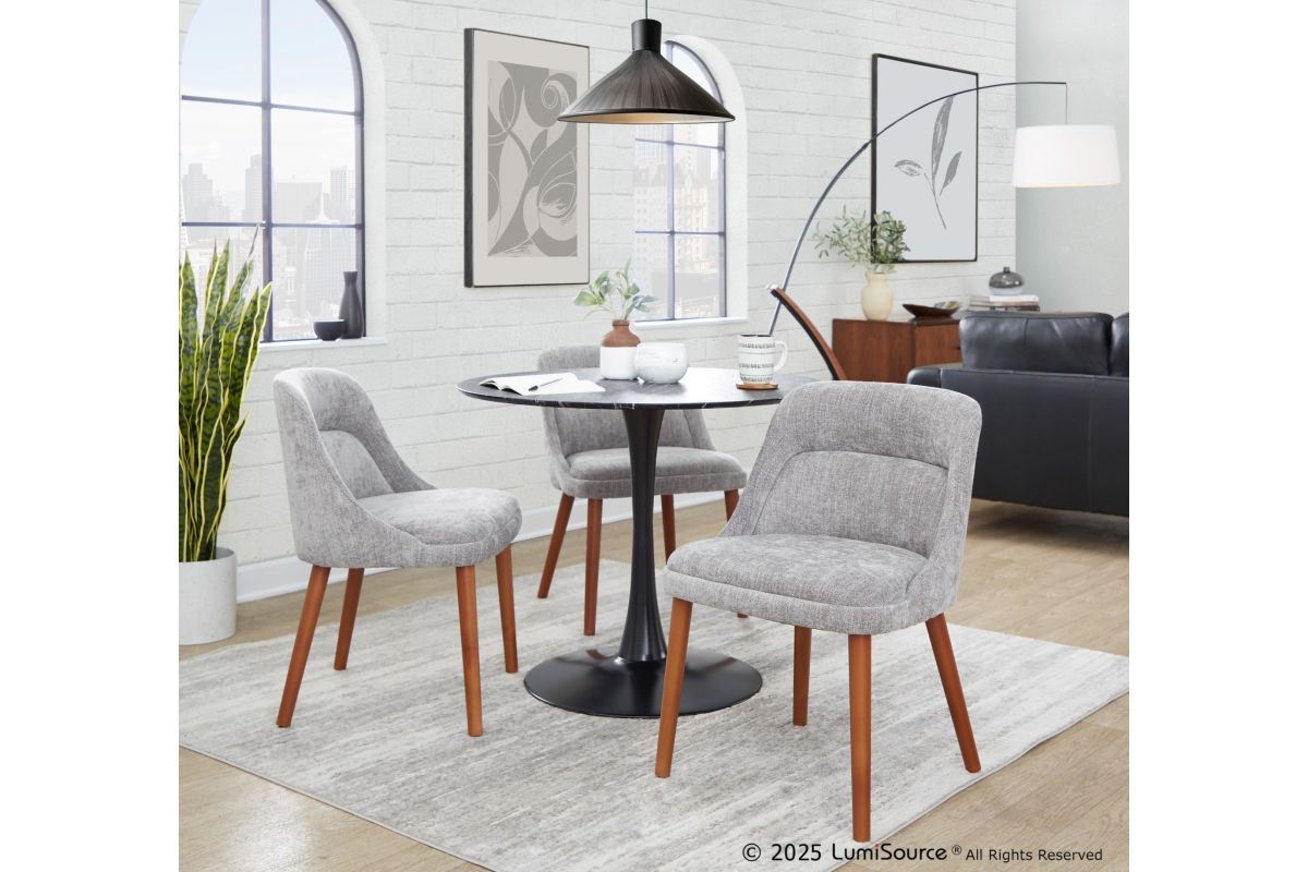 Elevate your space with the Rina Chair by LumiSource, a perfect blend of mid-century modern charm and contemporary durability. Featuring luxurious fabric upholstery and sturdy wooden legs, this chair delivers both comfort and timeless style. Its sleek design and classic lines make it a versatile addition to any dining room. Available in various upholstery colors, choose the one that fits your space best.