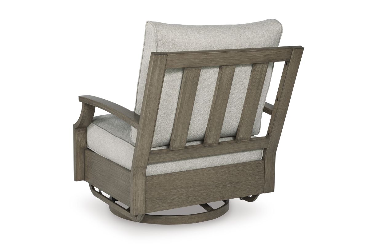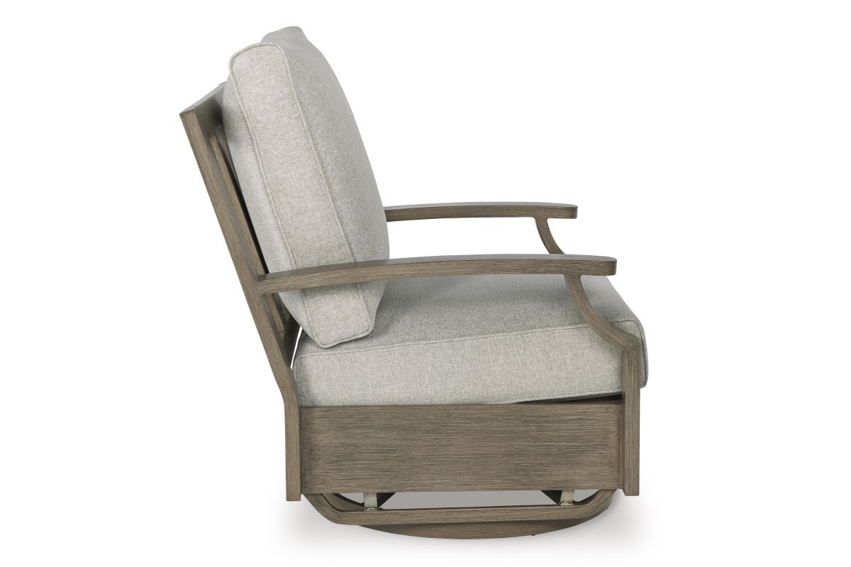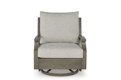 Experience the perfect combination of durability and style with this outdoor swivel glider chair. Enhanced by sumptuously soft cushions and throw pillows wrapped in high-performing, low-maintenance Nuvella+™ fabric, it's designed to provide you with years of enjoyment. This delightful addition to your outdoor space creates an oasis where comfort and beauty thrive.