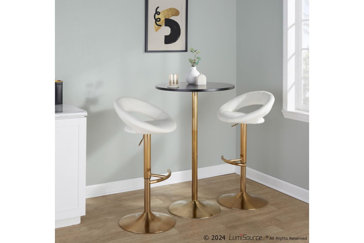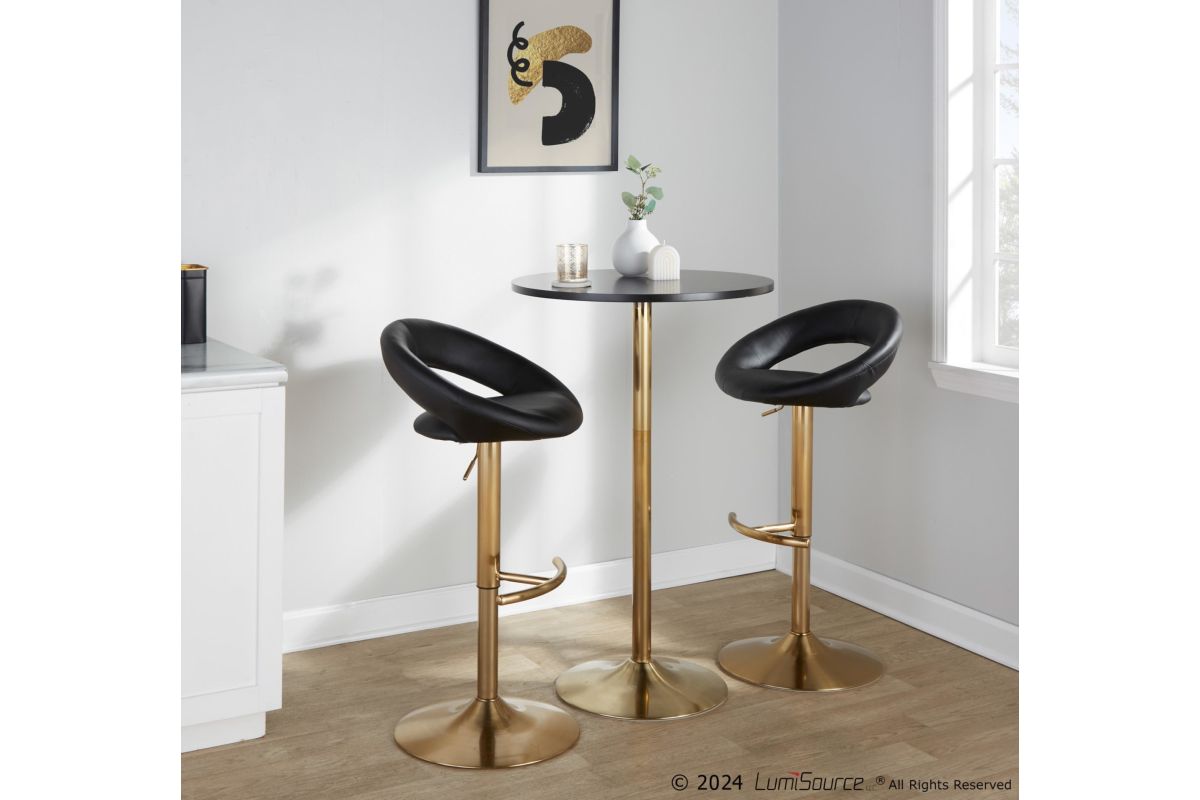 Create a glam pub or bistro atmosphere in your home with the contemporary design of the Pebble Table by LumiSource. This stylish table has a metal base with a gold finish and a wood top that adds sleek contrast. The Pebble Table is adjustable from 30" dining height, 36" counter height, and 42" bar height.