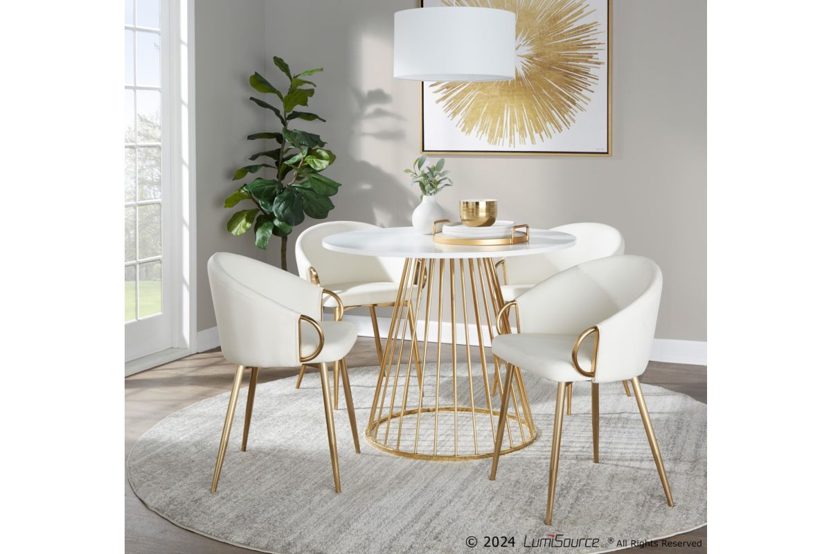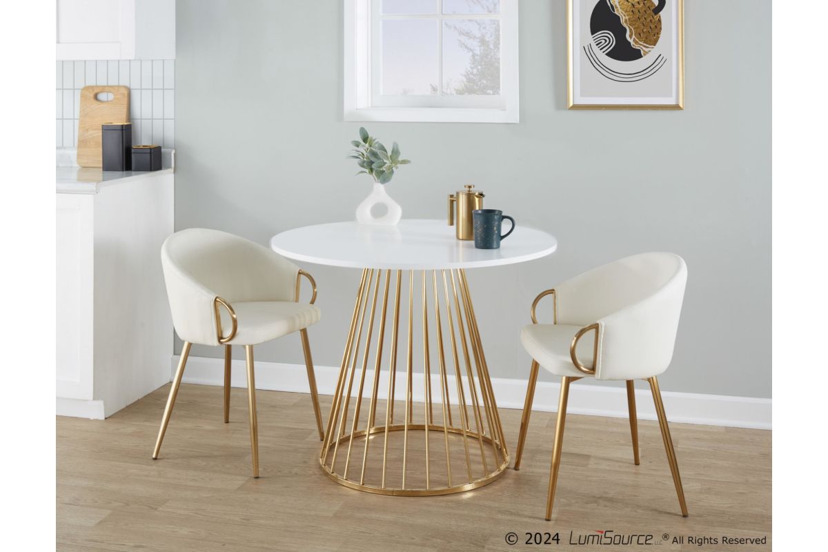 Opulent and confidently contemporary - that's the Canary Dining Table by LumiSource. Featuring a captivating cage-like metal base with an elegant top. The Canary Dining Table will definitely add a bold touch of glamour for your seating area. Available in a variety of table top and base colors, choose the one that fits your space best.