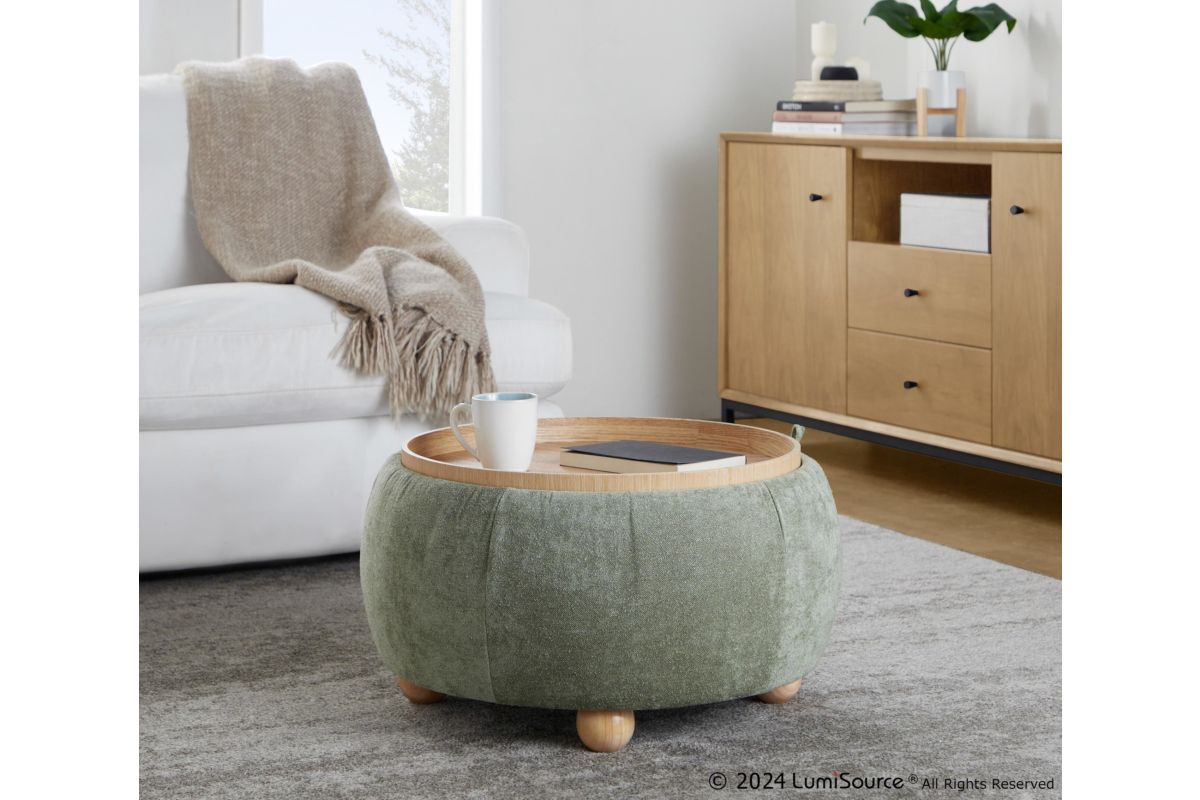 Add style and function to your living area with the Tray Pouf Storage Ottoman by LumiSource. This multi-use ottoman can be used as a comfortable place to rest your feet, a tray table, or extra seating. Lift the lid for convenient storage or flip the top for a solid tray surface. Available in various colors, choose the one that suits your style best!
