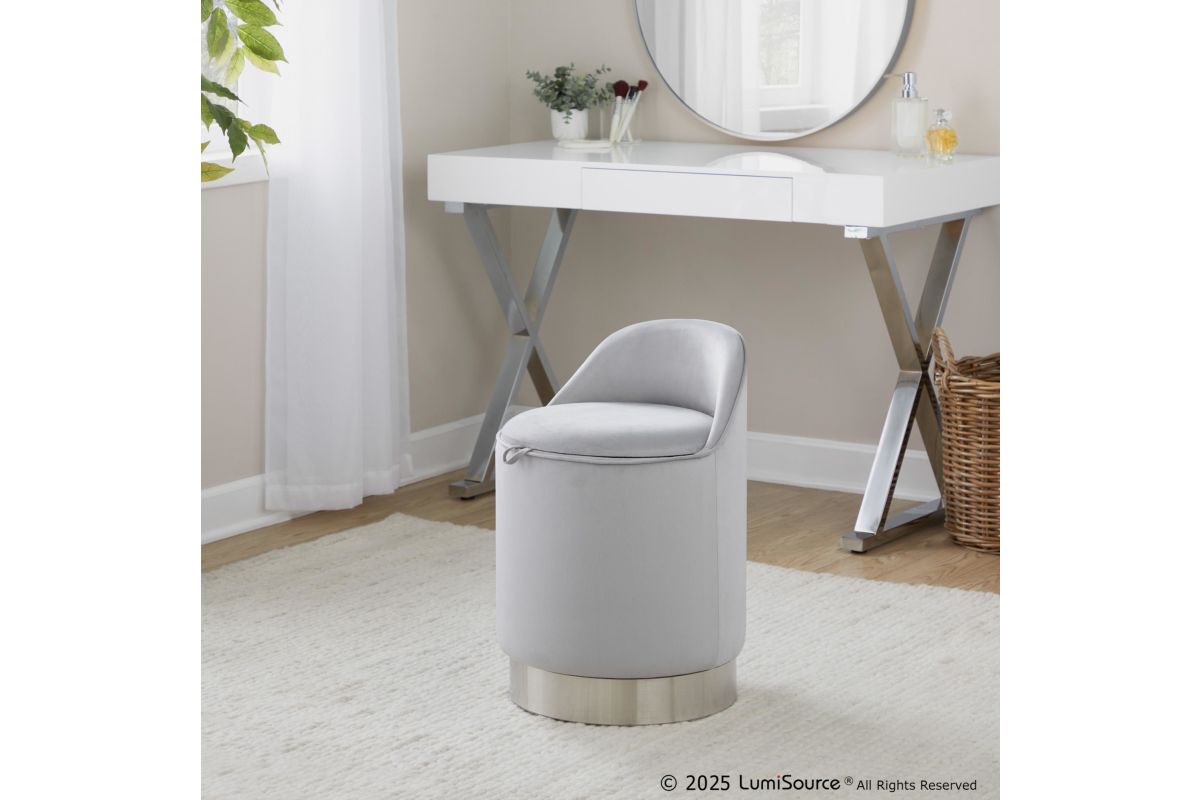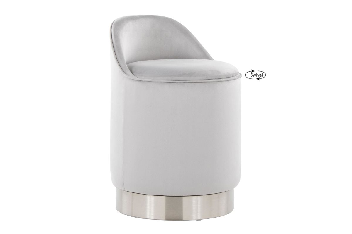 Bring a note of glamour to your home with the chic design of the Marla 18quot; Vanity Stool by LumiSource. Featuring a low backrest, luxuriously soft cushioned velvet upholstery and a chic metal swivel base that allows you to get ready with ease. Available in a variety of colors, choose the one that fits your space the best.