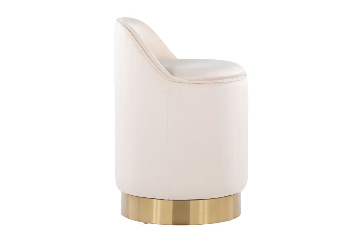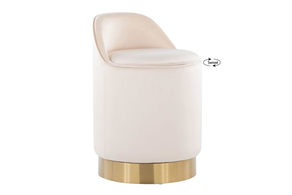 Bring a note of glamour to your home with the chic design of the Marla 18quot; Vanity Stool by LumiSource. Featuring a low backrest, luxuriously soft cushioned velvet upholstery and a chic metal swivel base that allows you to get ready with ease. Available in a variety of colors, choose the one that fits your space the best.