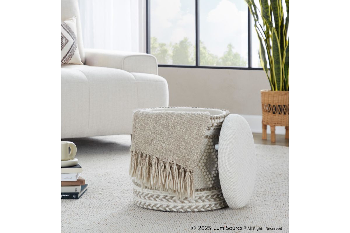 Elevate your living space with the stylish Tahoe Storage Ottoman by LumiSource, blending comfort and versatility in one elegant piece. Upholstered in a soft, woven material, this ottoman adds a cozy touch while doubling as extra seating or a convenient footrest. Its sturdy frame and unique hand woven, tufted and knotted design make it a perfect accent for any room.