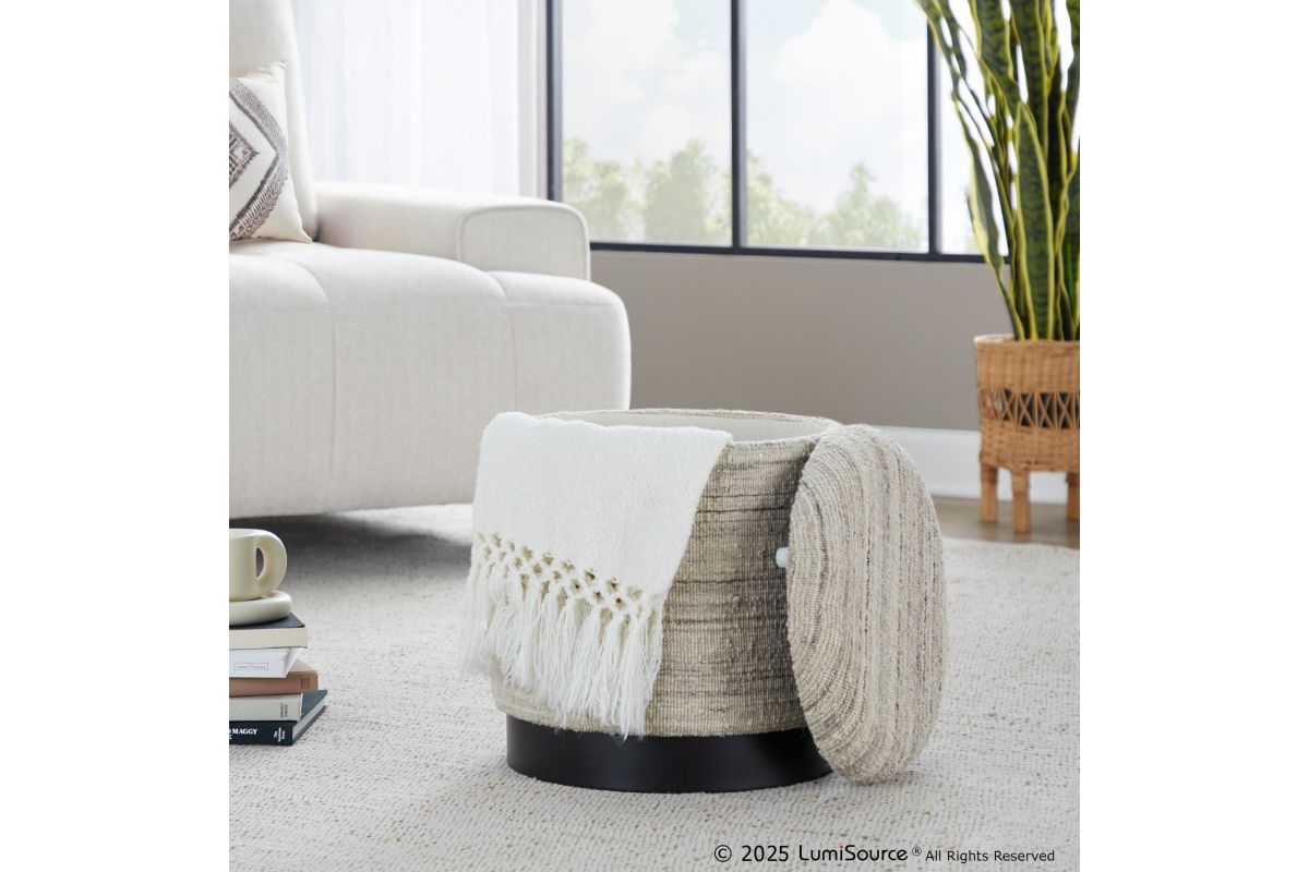 Elevate your living space with the stylish Tahoe Storage Ottoman by LumiSource, blending comfort and versatility in one elegant piece. Upholstered in a soft, woven material, this ottoman adds a cozy touch while doubling as extra seating or a convenient footrest. Its sturdy frame and unique hand woven design make it a perfect accent for any room.