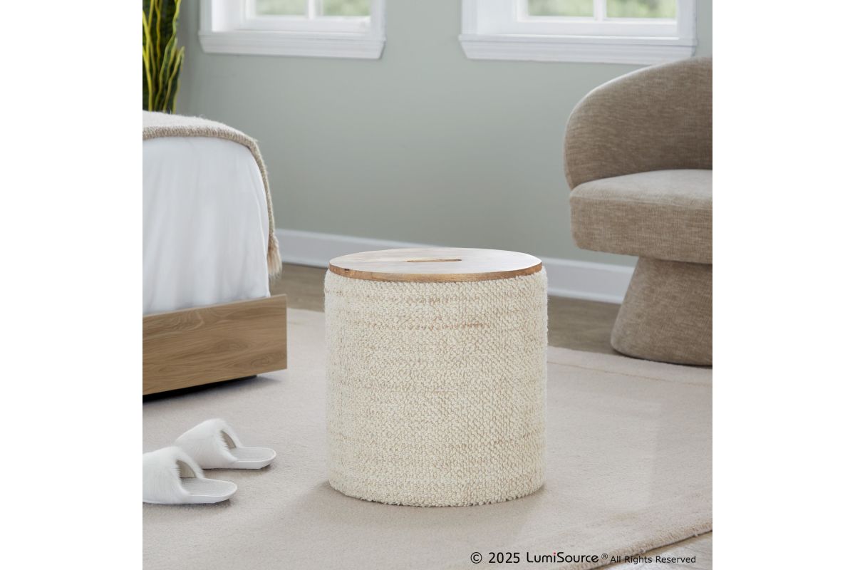 Elevate your living space with the stylish Tahoe Storage Ottoman by LumiSource, blending comfort and versatility in one elegant piece. Upholstered in a soft, woven material, this ottoman adds a cozy touch while doubling as extra seating or a convenient footrest. Its sturdy frame and unique hand woven wool design make it a perfect accent for any room.