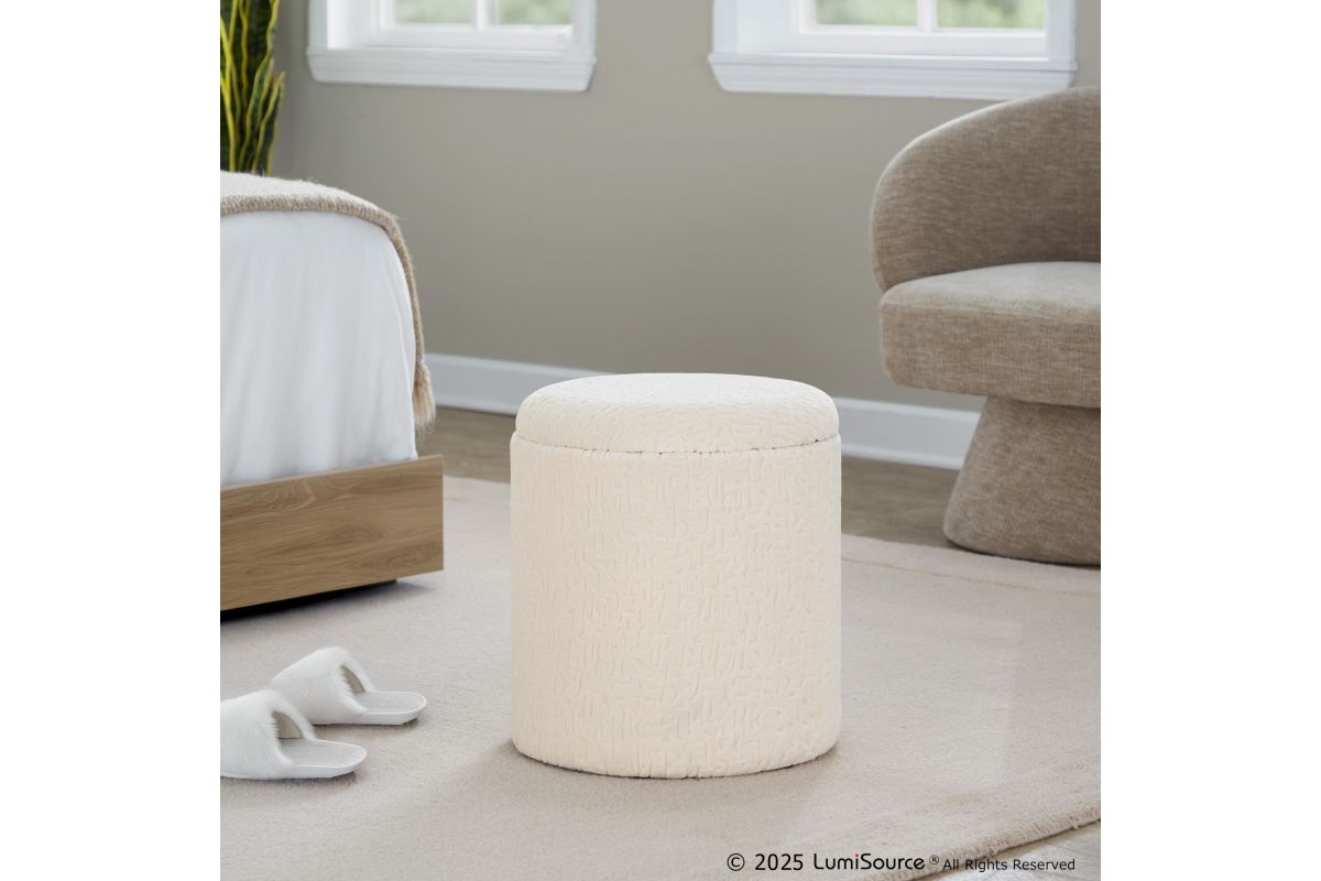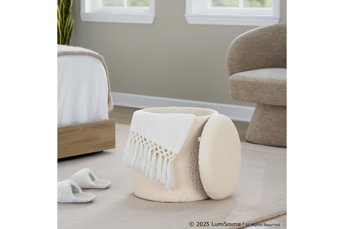 Elevate your living space with the stylish Tahoe Storage Ottoman by LumiSource, blending comfort and versatility in one elegant piece. Upholstered in a soft, stylish material, this ottoman adds a cozy touch while doubling as extra seating or a convenient footrest. Its sturdy frame and unique textured design make it a perfect accent for any room.