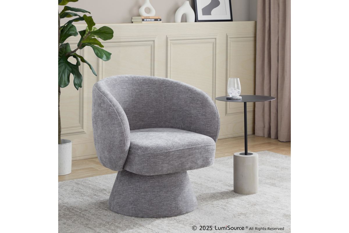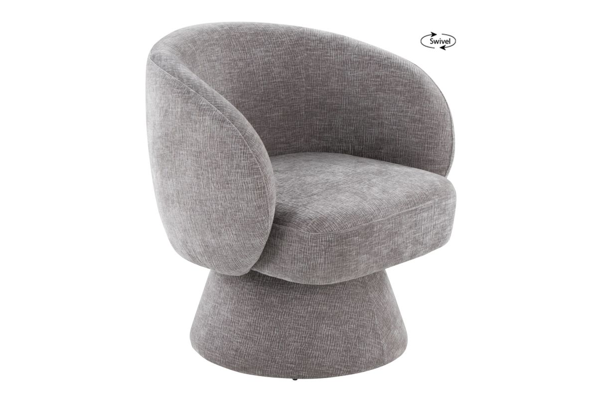 The contemporary charm of the Fran Swivel Accent Chair by LumiSource combines sturdy construction with aesthetic appeal. With smooth fabric material, its round and cozy shape will be the perfect addition for any room. Available in a variety of color combinations, the Fran Accent Chair can be used as a small accent chair or for extra seating.