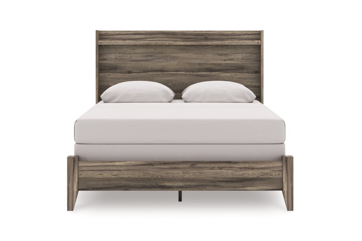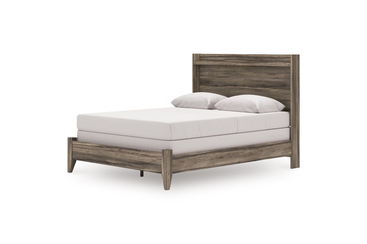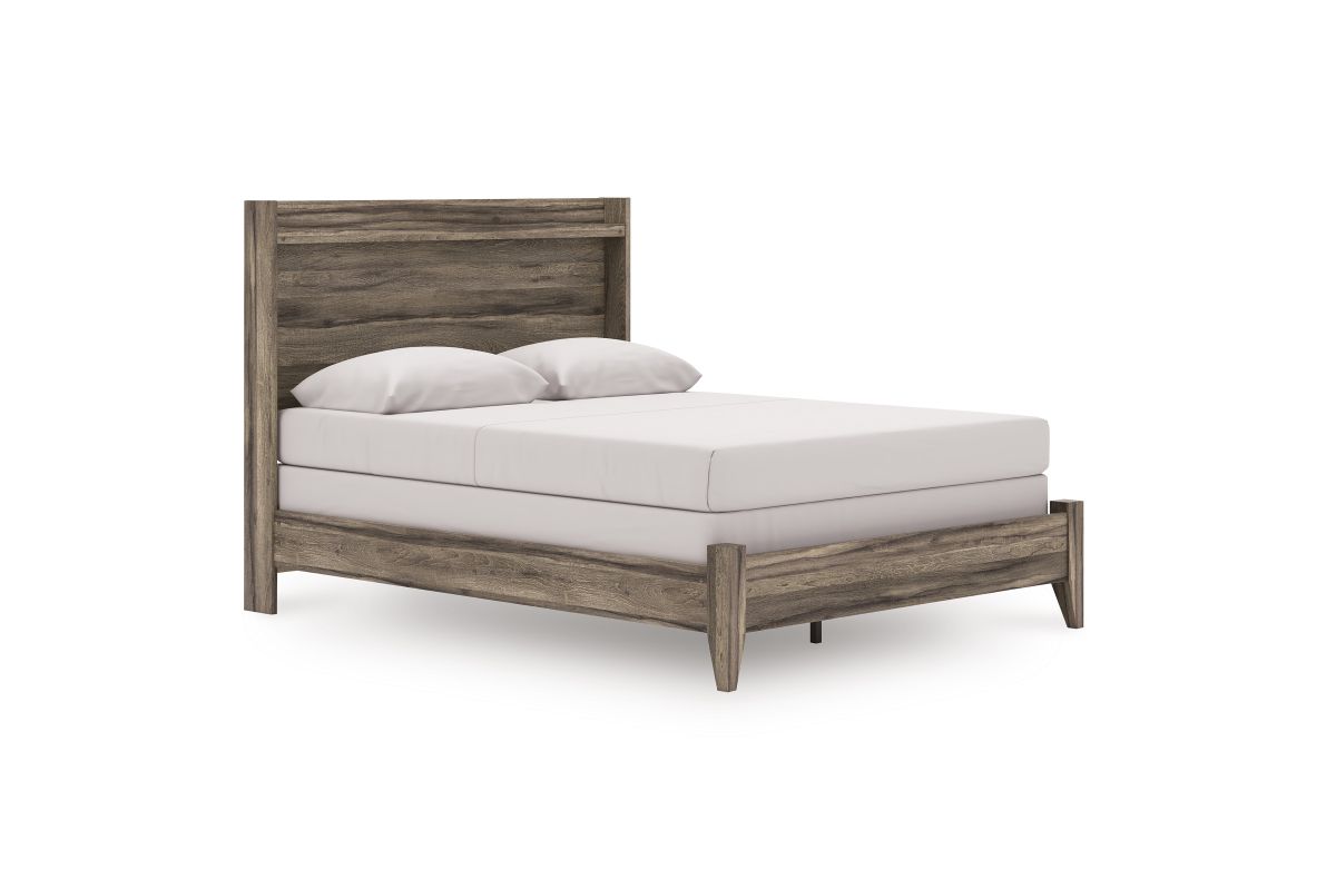 Rest in the casually cool style of this queen panel bed. A weathered brown finish and chill LED lighting create an easygoing vibe, setting the scene in your restful retreat. The bed's clean-lined design provides a fuss-free look.
