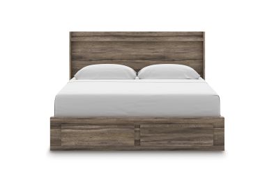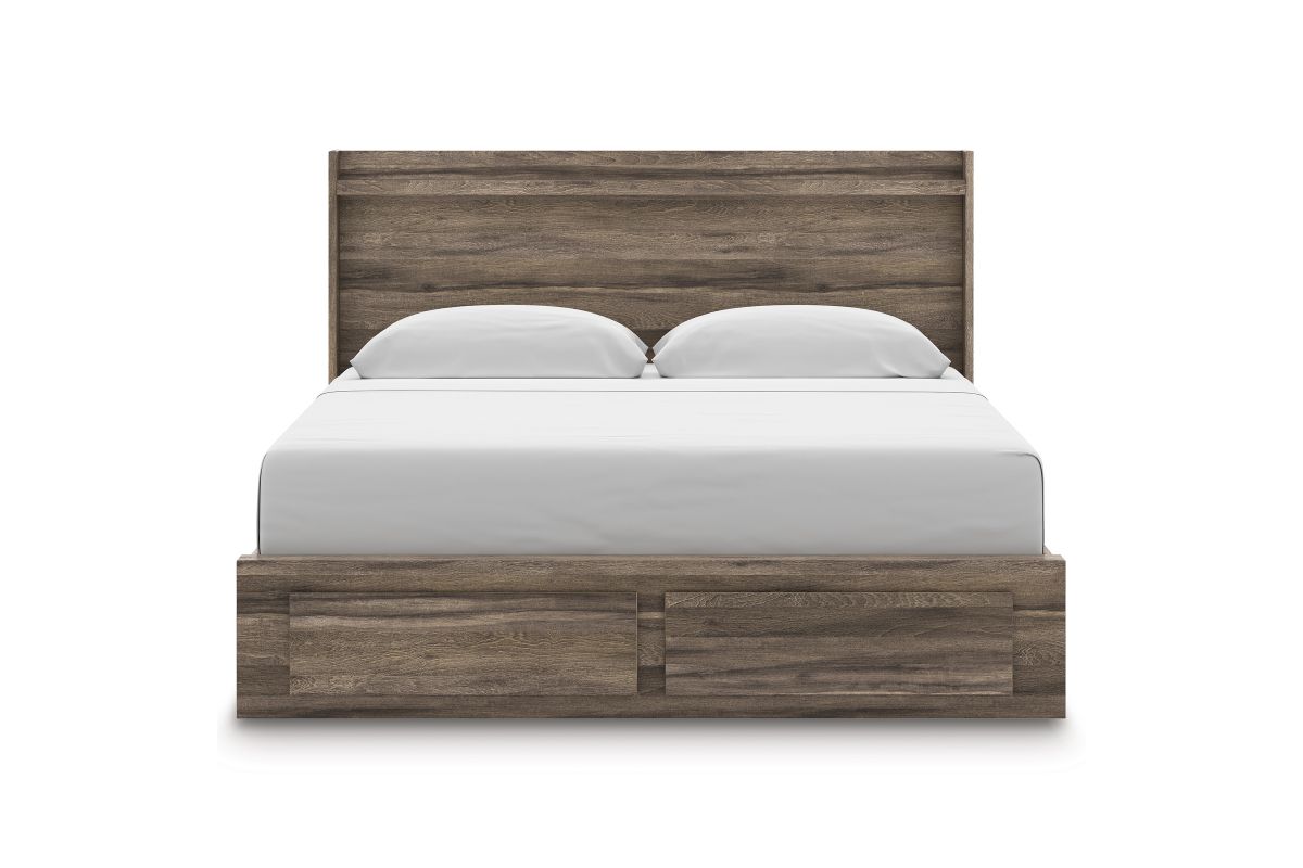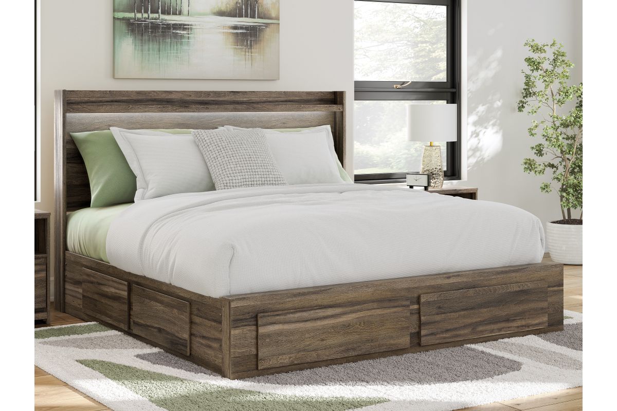 Rest in the casually cool style of this king panel storage bed. A weathered brown finish and chill LED lighting create an easygoing vibe, setting the scene in your restful retreat. Spacious drawers underneath provide plenty of storage. The bed's clean-lined design provides a fuss-free look.