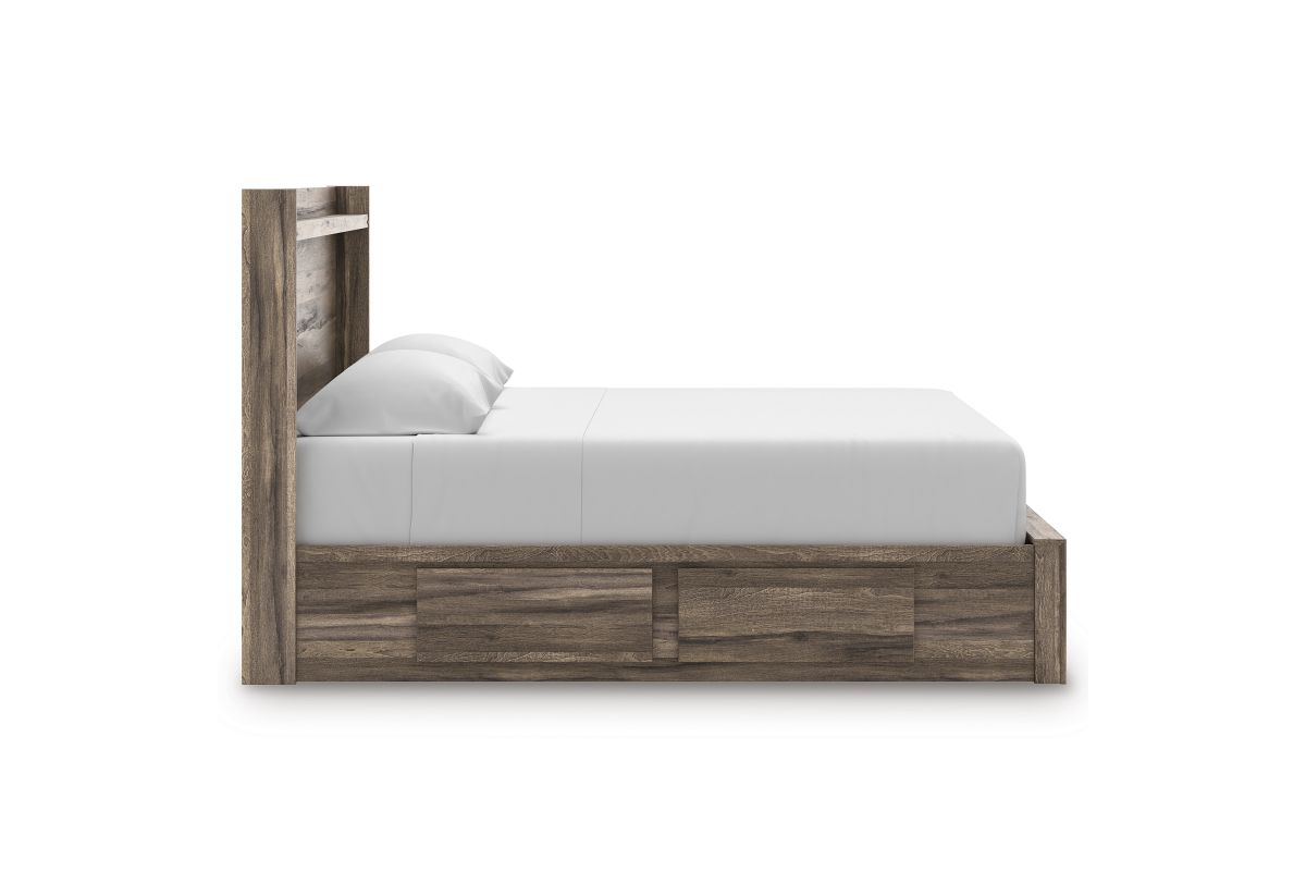 - Includes panel headboard, storage footboard, under bed storage unit, platform rails and roll slats
