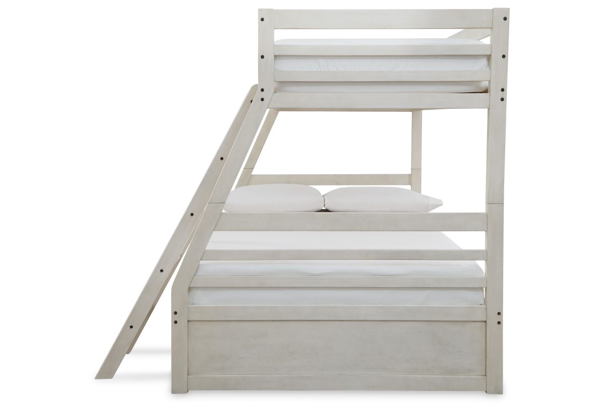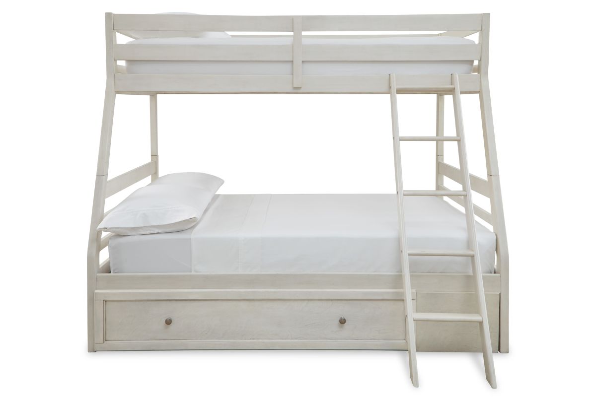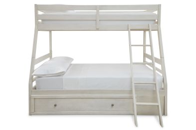 Elegant, timeless furnishings take your bedroom to the next level. Nothing does that better than this twin over full bunk bed. The antiqued white finish with a wonderful grain texture gives this youthful bed a sophisticated touch. Under bed storage makes this the perfect piece to add a layer of function to your tasteful bedroom.