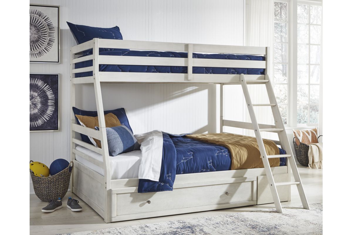 - Includes twin/full bunk bed panels, twin/full ladder/rails/slats and under bed storage