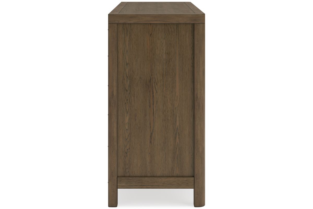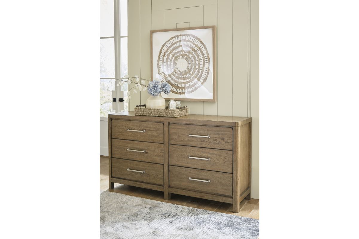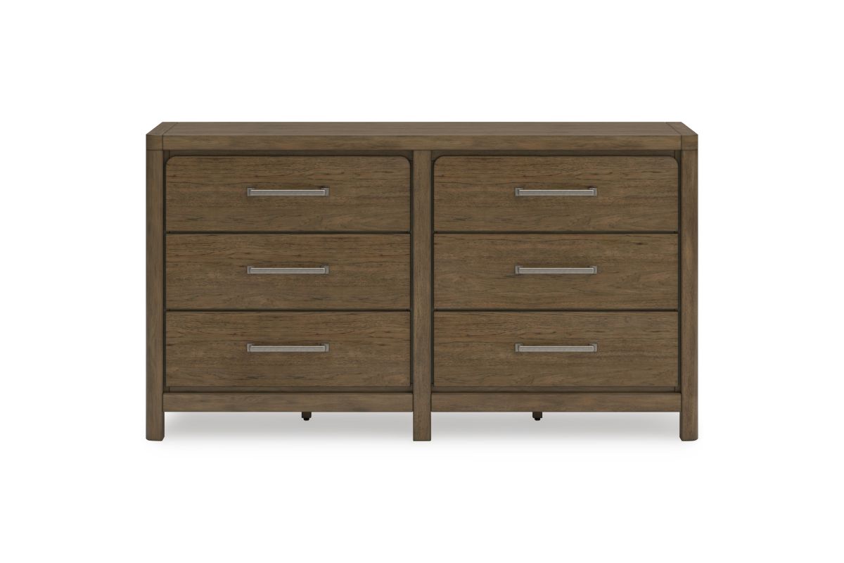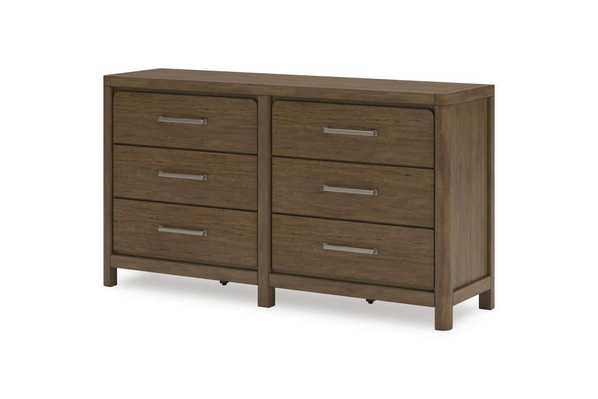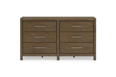 This dresser sits comfortably at the intersection of modern lodge and farmhouse aesthetics. Your warm and welcoming disposition is reflected in the charming architectural elements and light brown glazed finish. Even with its poise, the dresser remains practical. Smooth-gliding drawers tuck away necessities, defining your bedroom with reliable function and style.
