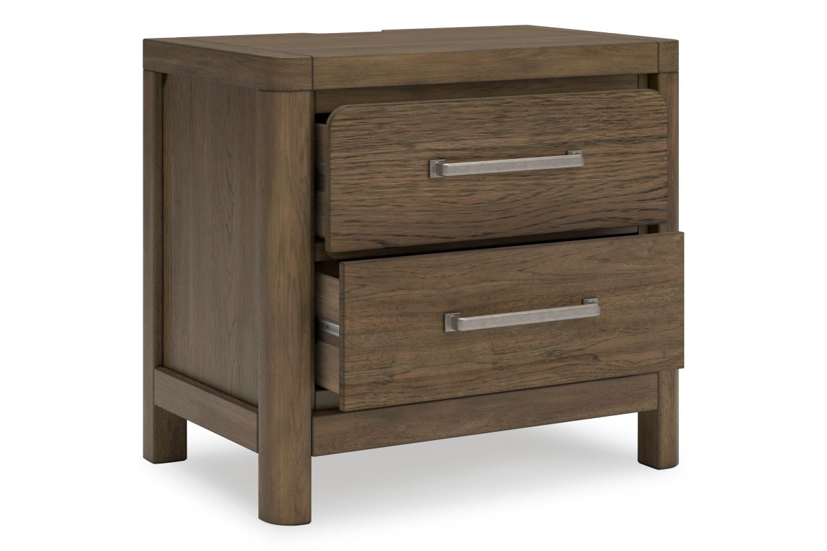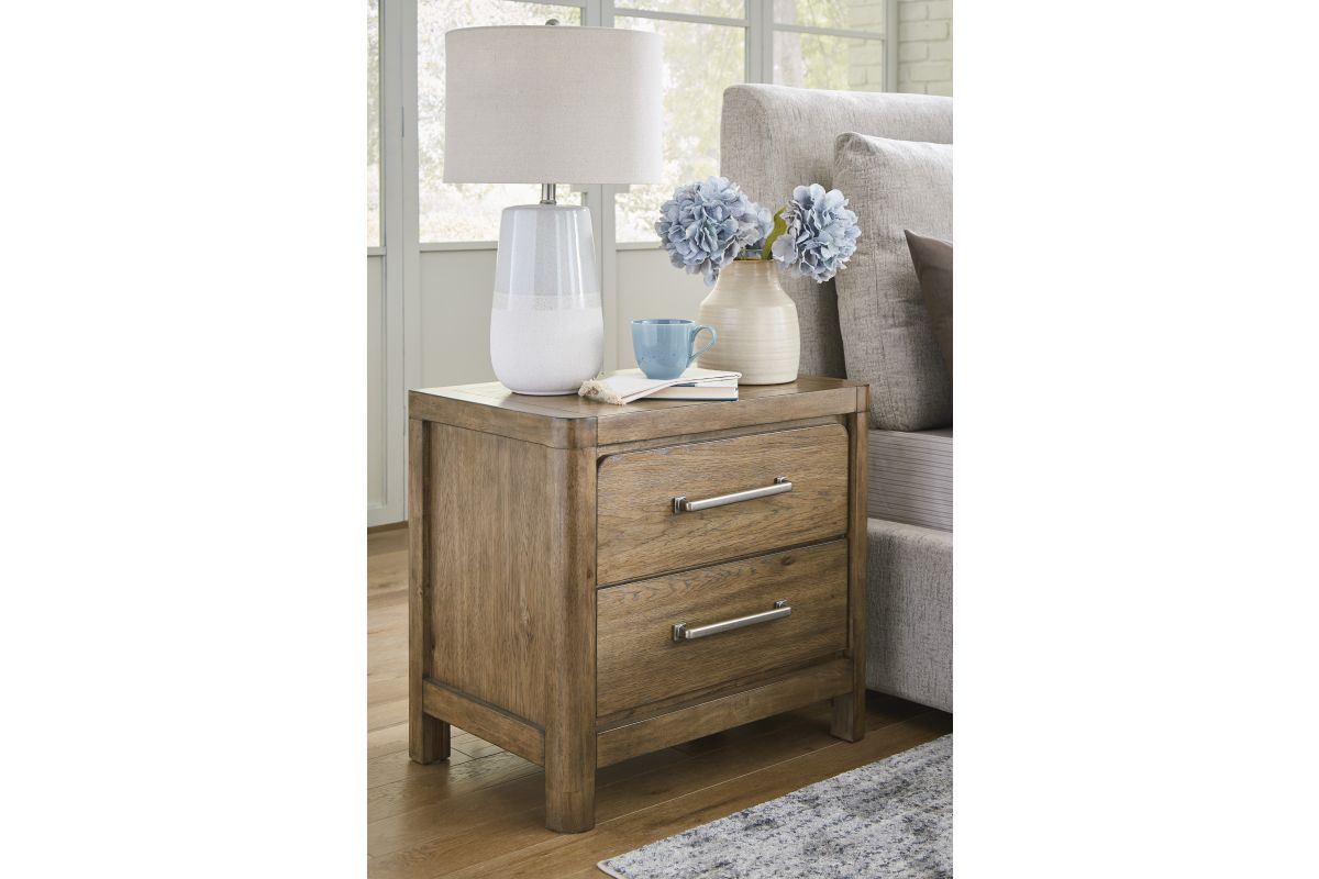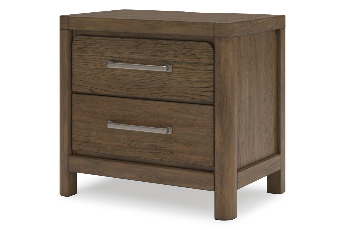 This nightstand sits comfortably at the intersection of modern lodge and farmhouse aesthetics. Your warm and welcoming disposition is reflected in the charming architectural elements and light brown glazed finish. Even with its poise, the nightstand remains practical. Included USB ports keep you charged up for late-night scrolling, defining your bedroom with reliable function and style.