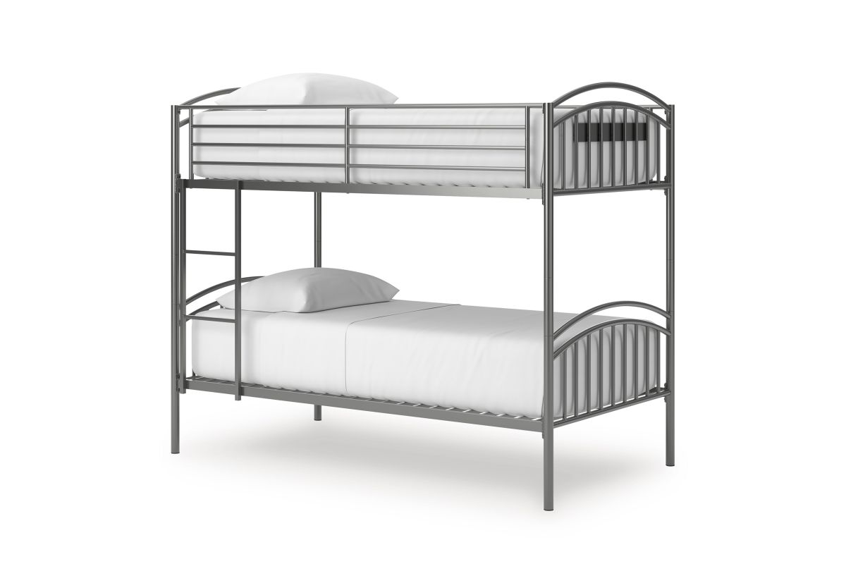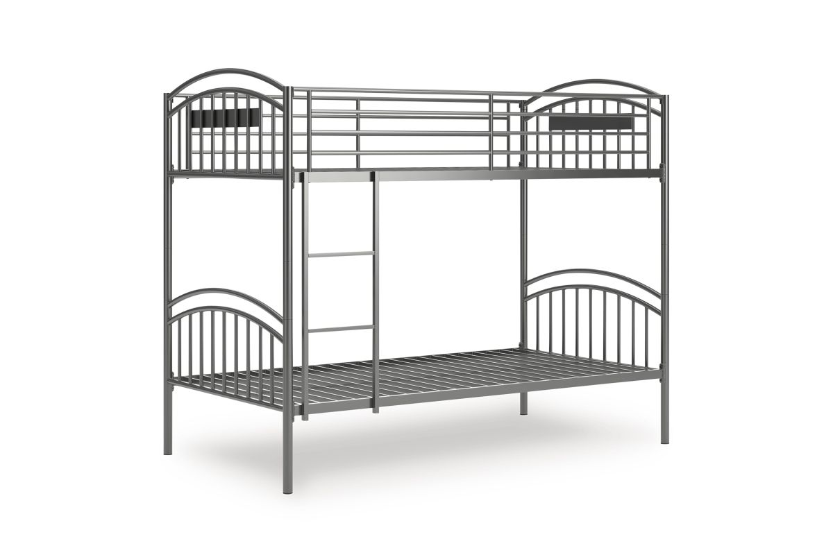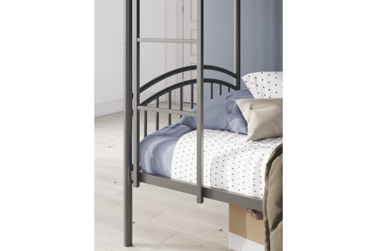 Save space and let little ones snooze in style. This bunk bed's steel gray finish pairs with a variety of colors and aesthetics. Its ladder position adjusts to the left or right side to suit a bedroom's layout. And the bed is adaptable to your family's changing needs, with the ability to convert from a bunk bed to two individual twin beds.