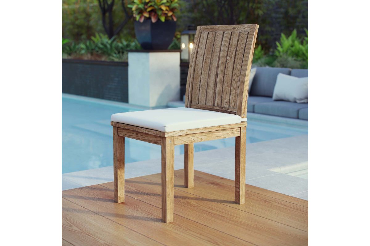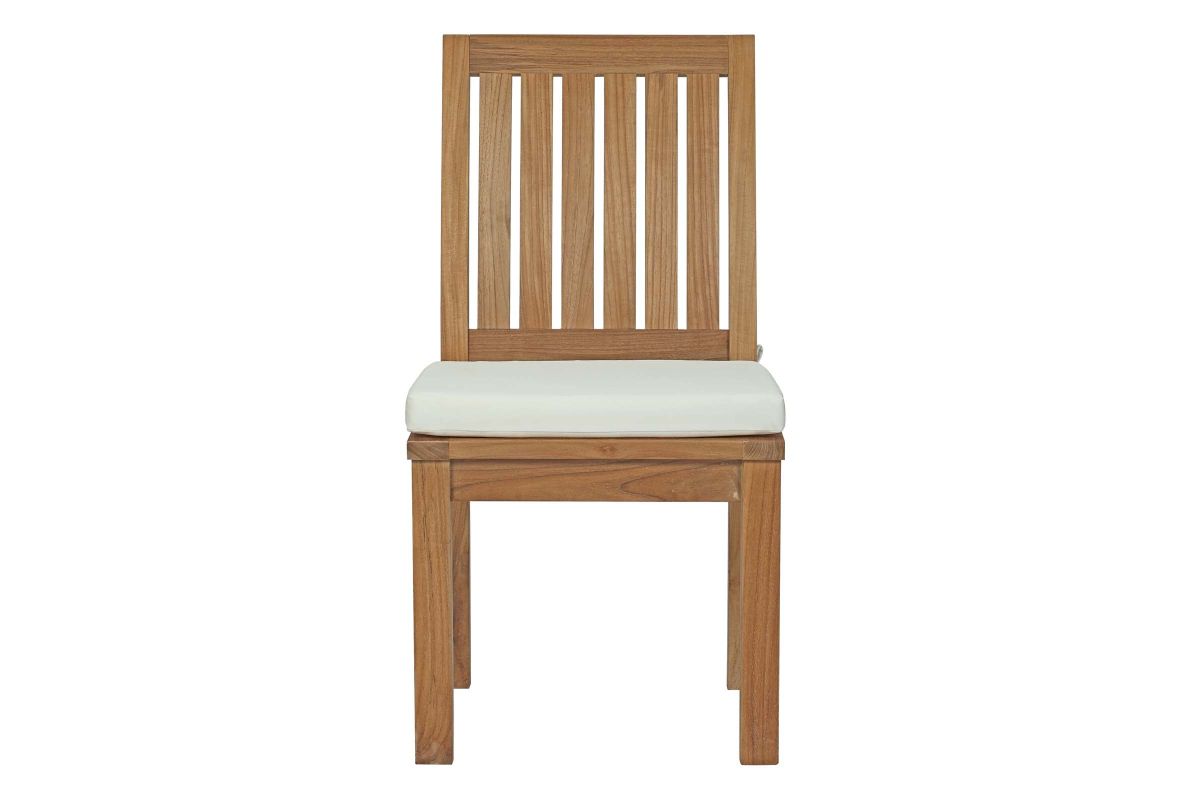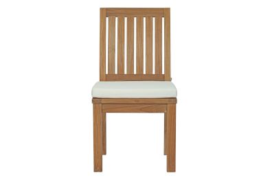 Harbor your greatest expectations with the luxurious Marina Teak Wood Outdoor Patio Dining Chair. Marina Patio Dining Furniture set has a seating arrangement perfect for every member of your crew as you breathe the fresh, crisp air of a day spent with friends and family. Known for its natural ability to withstand extreme weather conditions, teak is the wood selection of choice for long-lasting outdoor patio furniture. Now you can enjoy Marina Teak Wood Outdoor Dining Chair with its durable construction and all-weather cushions, alongside a modern design that persistently looks new and welcoming in your patio dining environs. Assembly required.