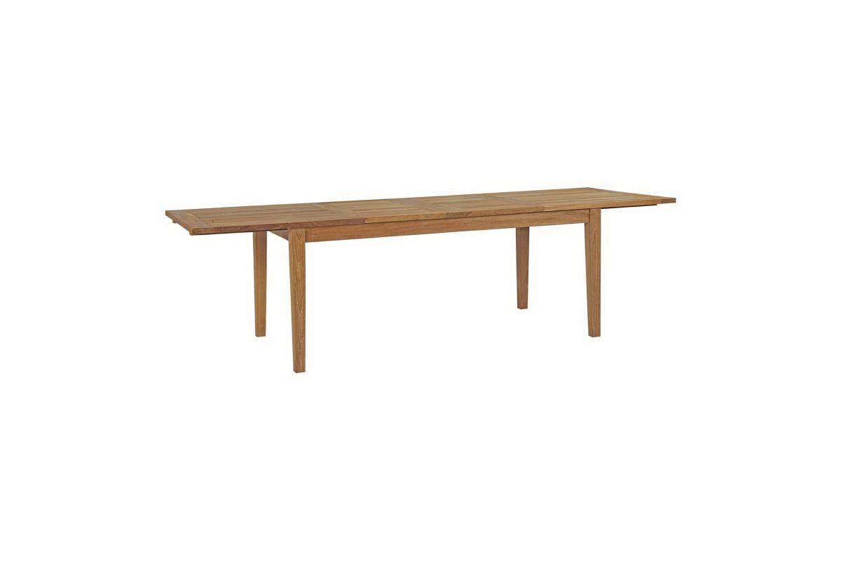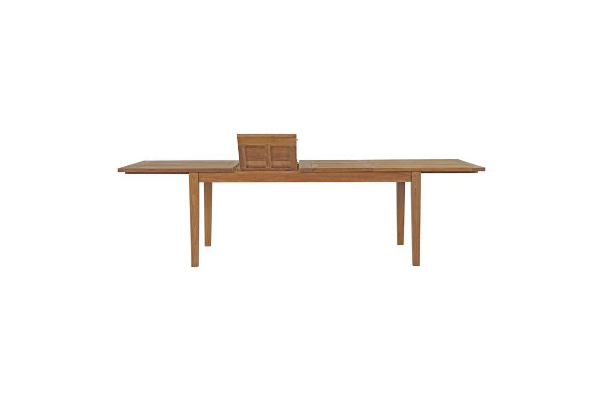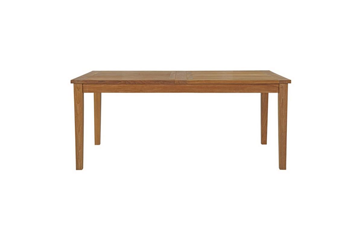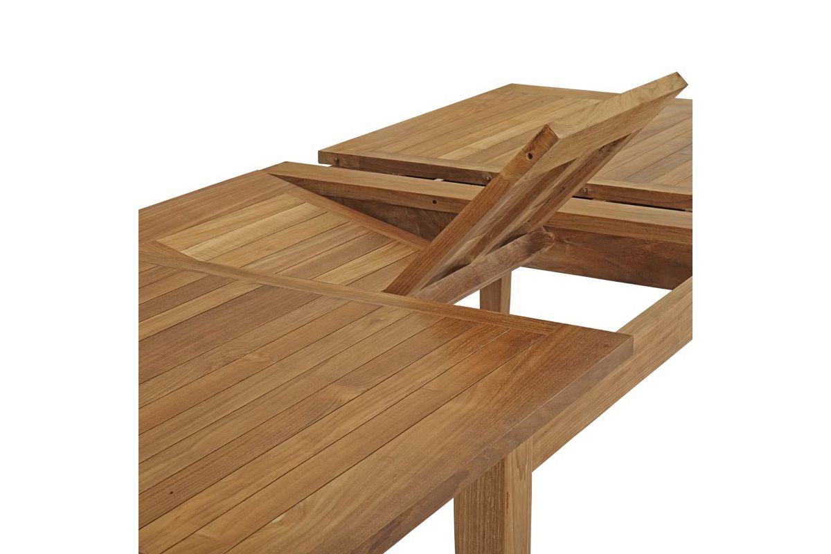 Harbor your greatest expectations with the luxurious Marina Teak Wood Outdoor Patio Extendable Dining Table. Marina Patio Dining Table has a seating arrangement perfect for every member of your crew as you breathe the fresh, crisp air of a day spent with friends and family. Known for its natural ability to withstand extreme weather conditions, teak is the wood selection of choice for long-lasting outdoor patio furniture. Now you can enjoy Marina Teak Wood Outdoor Dining Table as it extends from 70.5"L to 108.5" with its durable construction, alongside a modern design that persistently looks new and welcoming in your patio dining environs. Assembly required.