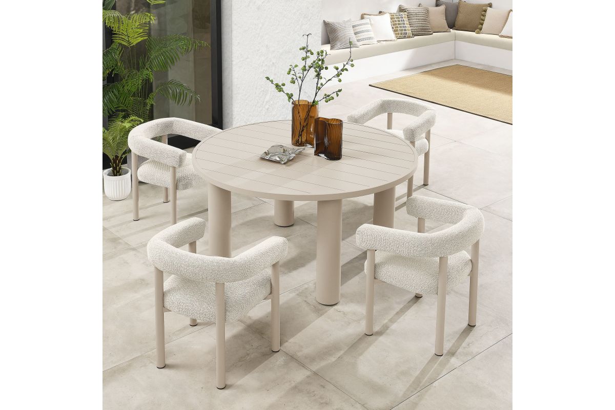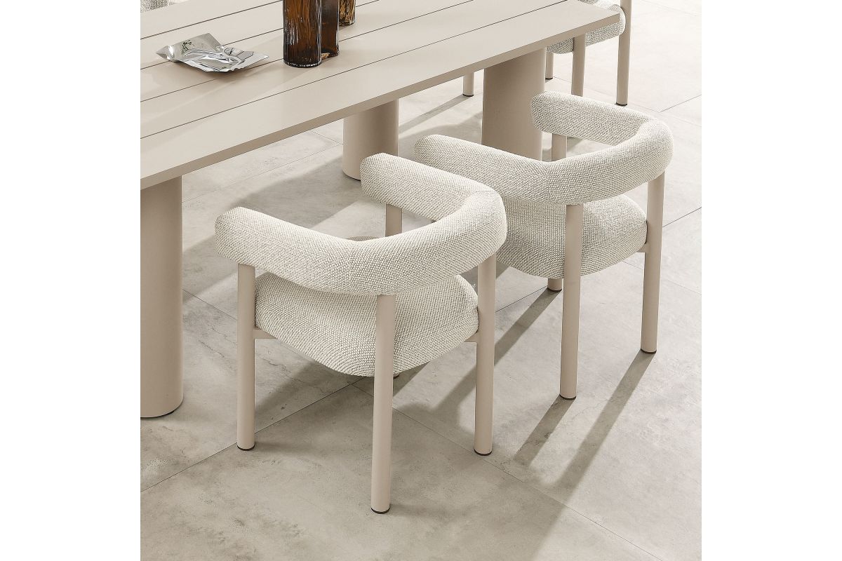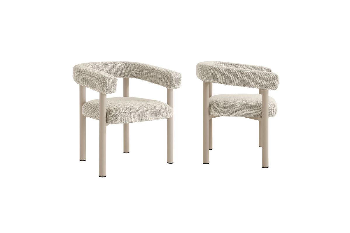 Elevate your outdoor space with the Nautica Modern Contemporary Patio Dining Armchairs Set of 2. Crafted from powder-coated metal, these aluminum outdoor dining chairs combine durability with sleek design. The curved back and sleek tubular frame offer a perfect blend of comfort and style, making them standout patio chairs in any setting. Designed for all weather conditions, these outdoor dining chairs feature quick-drying dense foam padding and water-resistant fabric upholstery. Non-marking plastic foot glides protect your flooring, making these aluminum outdoor chairs ideal for any surface. Whether you need seating for your outdoor dining table, balcony, or stylish patio setup, the Nautica Fabric Upholstered Metal Armchairs Set of 2 is your go-to choice for exceptional outdoor seating. Enhance your patio, porch, or garden with this versatile aluminum patio furniture collection, and enjoy comfort and style all year round. No assembly required. Weight Capacity of each aluminum patio chair : 300 lbs.