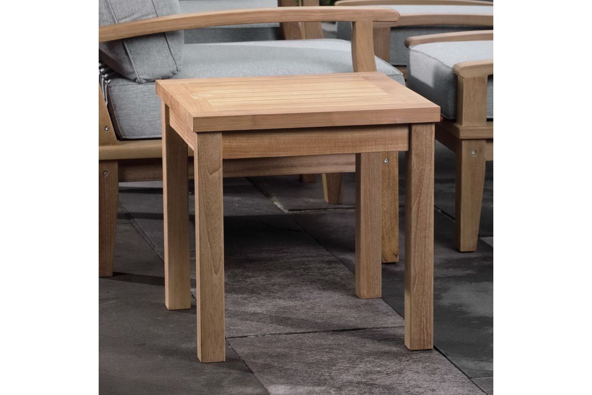 Harbor your greatest expectations with the luxurious Marina Teak Wood Outdoor Patio Side Table. Marina Patio Furniture set has a seating arrangement perfect for every member of your crew as you breathe the fresh, crisp air of a day spent with friends and family. Known for its natural ability to withstand extreme weather conditions, teak is the wood selection of choice for long-lasting outdoor patio furniture. Now you can enjoy Marina Teak Wood Outdoor Side End Table with its durable construction, alongside a modern design that persistently looks new and welcoming in your patio seating environs. Assembly required.