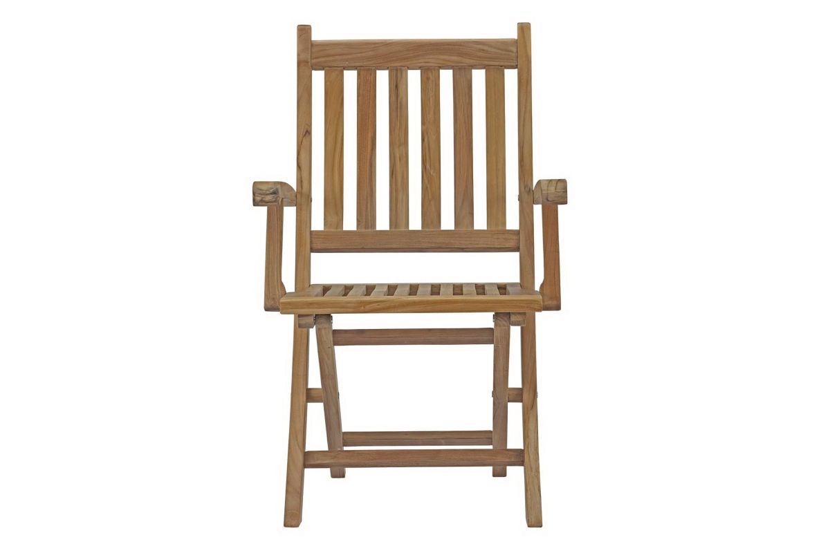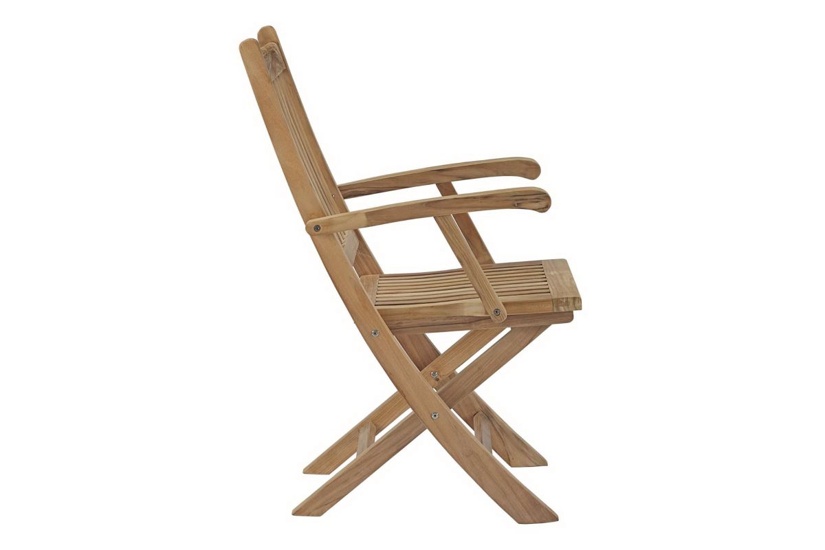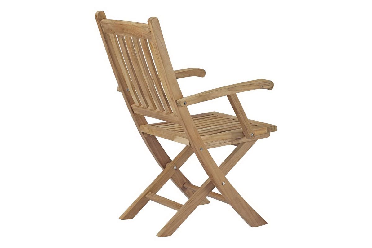 Harbor your greatest expectations with the luxurious Marina Teak Wood Outdoor Patio Folding Arm Chair. Marina Patio Folding Arm Chair has a seating arrangement perfect for every member of your crew as you breathe the fresh, crisp air of a day spent with friends and family. Known for its natural ability to withstand extreme weather conditions, teak is the wood selection of choice for long-lasting outdoor patio furniture. Now you can enjoy Marina Teak Wood Outdoor Folding Arm Chair with its durable construction, alongside a modern design that persistently looks new and welcoming in your patio dining environs. Assembly required.