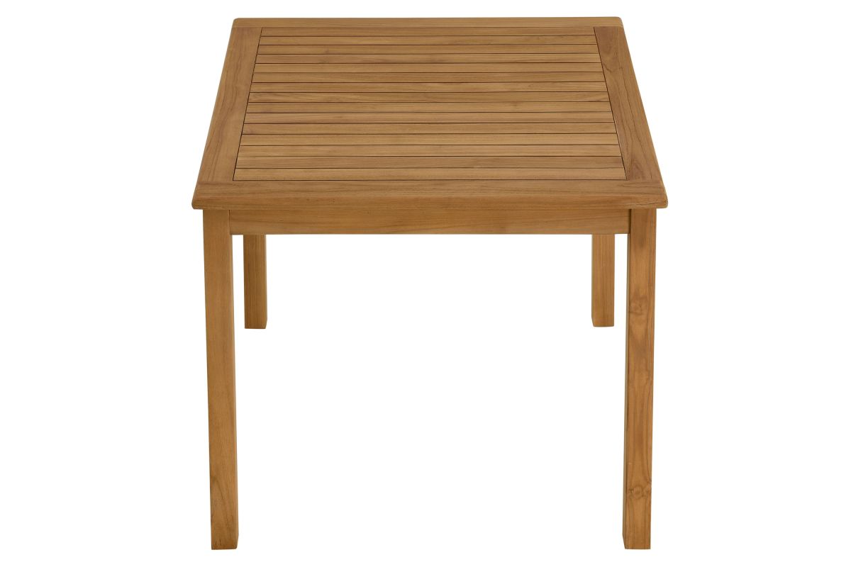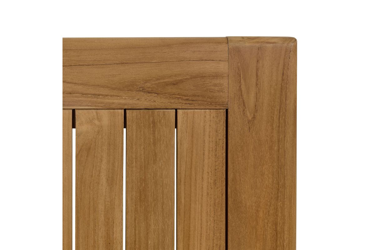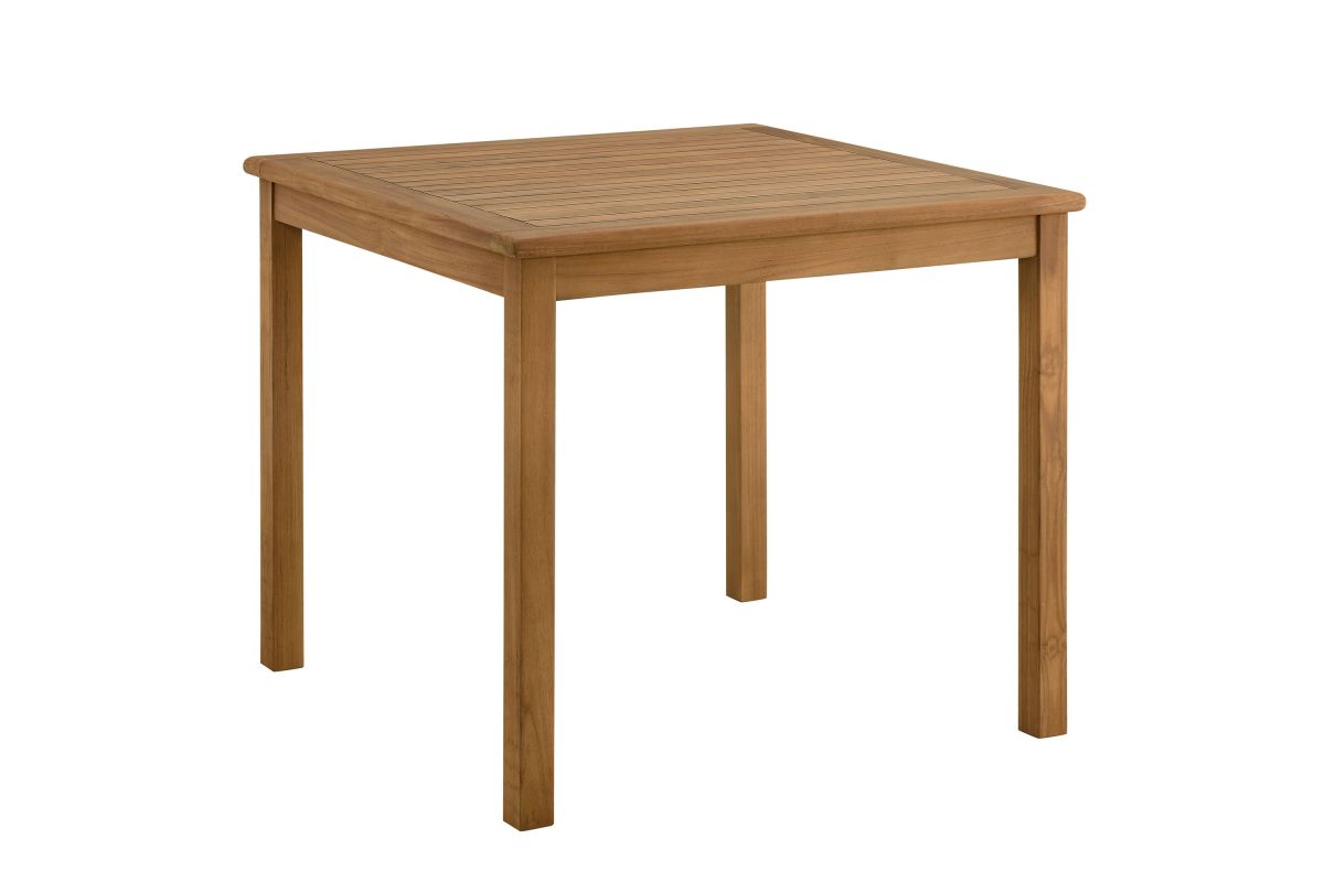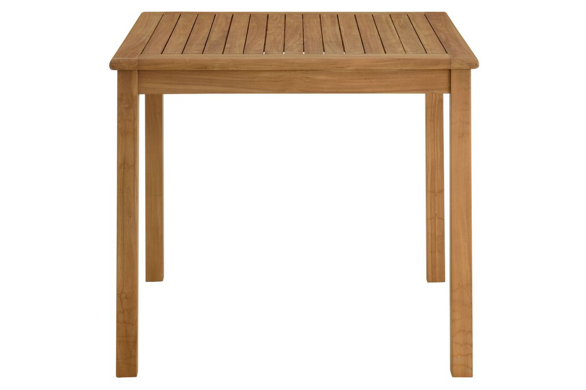 Refresh your outdoor dining experience with the Vienna Teak Wood Dining Table, an exquisite addition for everyday casual dining outside. This square outdoor dining table, crafted from beautiful teak wood that is naturally weather-resistant, features a slatted surface that creates a contemporary and cohesive look ideal for any patio or garden setting. Perfect for cozy meals and small get-togethers, this outdoor dining table comfortably seats 4 people. Standing on four solid wood legs, the 34-inch square Vienna Teak Patio Table provides stability and durability, creating a timeless focal point for your outdoor decor. Whether used as wood bistro table, an outdoor breakfast table, or paired with the complete Vienna Outdoor Teak Wood Furniture Set, this square patio table complements a diverse range of outdoor patios. Assembly Required.