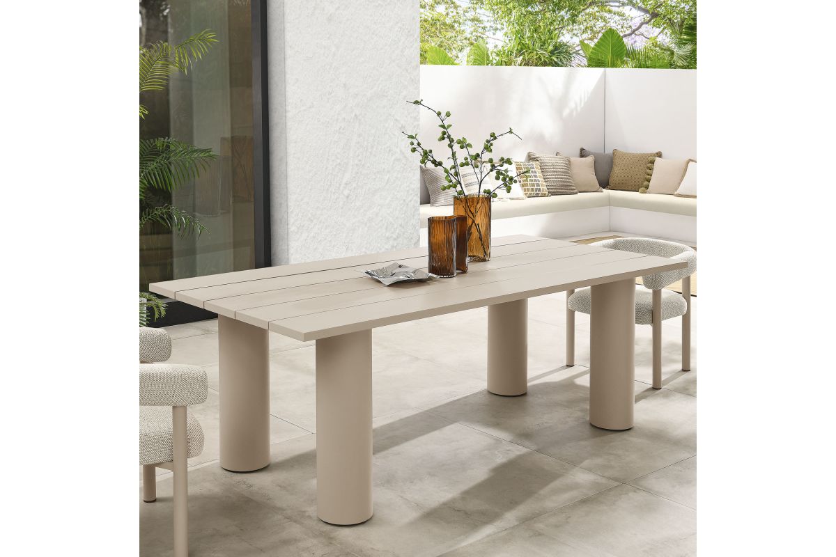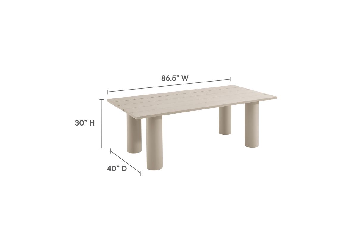 Elevate your outdoor space with the Nautica Modern Contemporary Patio Dining Table. Crafted from powder-coated aluminum, this outdoor aluminum dining table combines durability with sleek design. The 87" rectangle metal dining table offers a perfect blend of aesthetic appeal and functionality, comfortably seating 6 to 8 people, making it a standout table for outside patios. Designed for all weather conditions, this rectangle dining table is weather-resistant, providing long-lasting use with its slatted tabletop and tubular legs. The non-marking plastic foot glides protect your flooring, making this aluminum outdoor dining table ideal for any surface. Whether you need a table for your outdoor dining set or a stylish modern patio dining table on your deck, Nautica is your go-to choice for exceptional patio functionality. Enhance your backyard, porch, or garden with this large dining table, and enjoy style and utility all year round. Assembly required.
