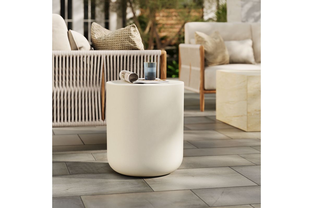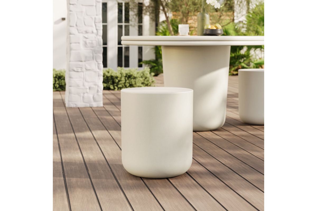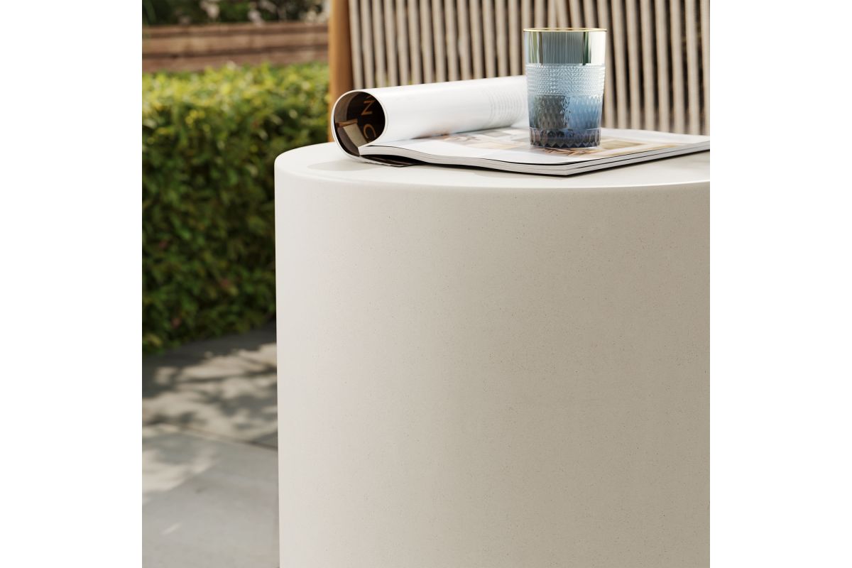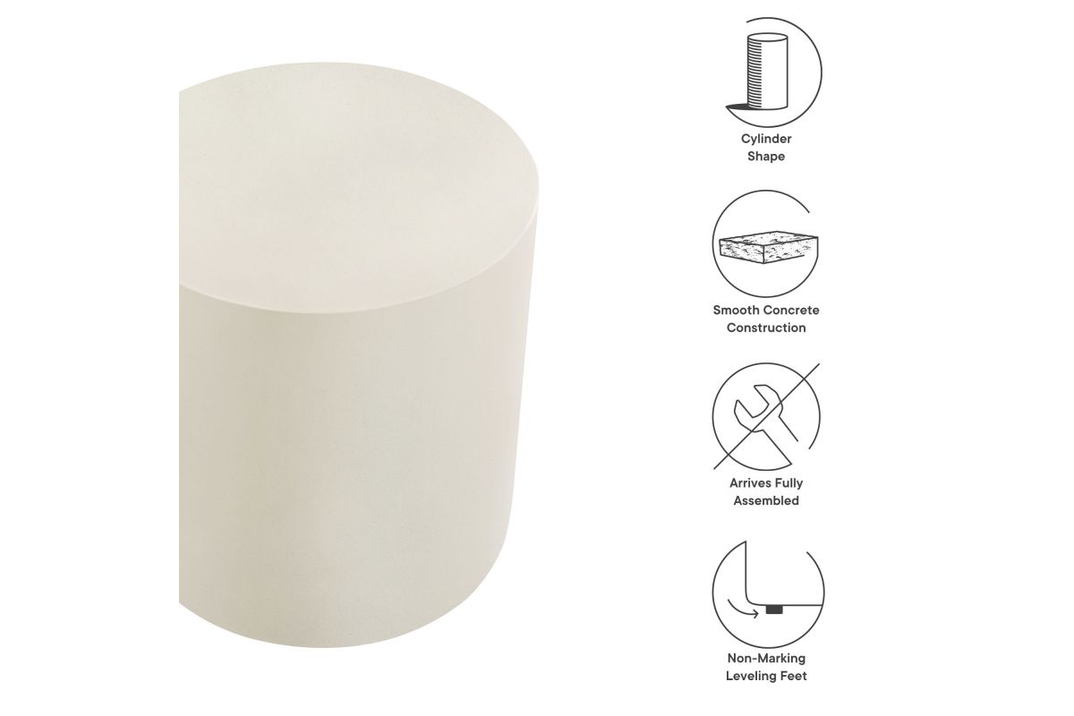 The Brion Concrete Round Stool makes a bold statement with its contemporary design and distinctive details. Crafted from solid concrete and finished with a sleek coating, this rounded stool provides both durability and a smooth, refined look. With its sleek cylindrical design and curved edges the Brion16-inch cement stool complements any decor, whether used indoors or outdoors. Its clean, seamless form offers superior stability while maintaining a minimalist aesthetic. Perfect for versatile use, Brion doesn’t only function as an extra seat or dining stool, but also an end table or plant stand, and is equally at home in a modern living room, cozy patio, or stylish garden setting. Complete with non-marking leveling feet, this sitting stool ensures stability on any surface while protecting your floors. No matter where it’s placed, the Brion concrete stool or side table stands out with its durable construction and modern aesthetic. Arrives fully assembled.