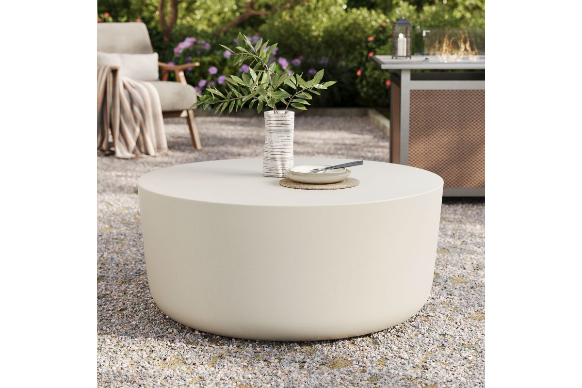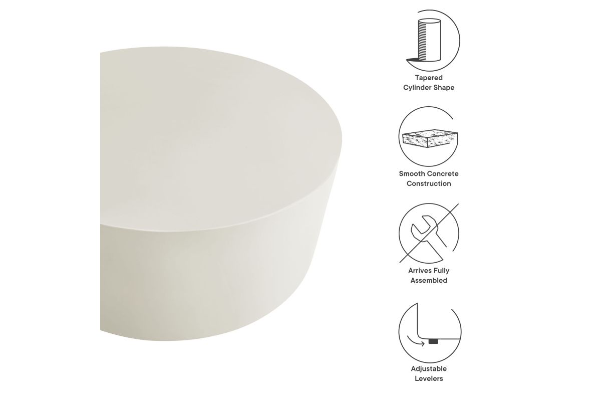 Bold yet refined, the Brion 34" round concrete coffee table offers a striking blend of modern minimalism and functional design. With its sleek, smooth finish and tapered cylinder shape, this round drum coffee table creates a captivating focal point in any living room or outdoor patio. Whether used as a concrete indoor/outdoor table or a low coffee table for small spaces, Brion’s solid construction ensures both durability and visual appeal. Its broad, circular top offers plenty of space for drinks, decor, or even as a large plant stand accent table. Designed with practicality in mind, Brion features built-in levelers to provide stability on uneven surfaces, making it the ideal outdoor coffee table or living room center table. Arriving fully assembled, the Brion concrete coffee table round is ready to enhance your space with its chic, contemporary style. Weight Capacity: 230 lbs.