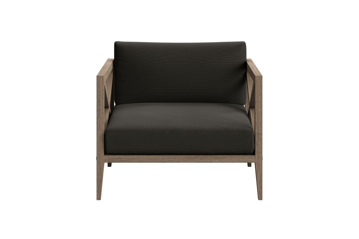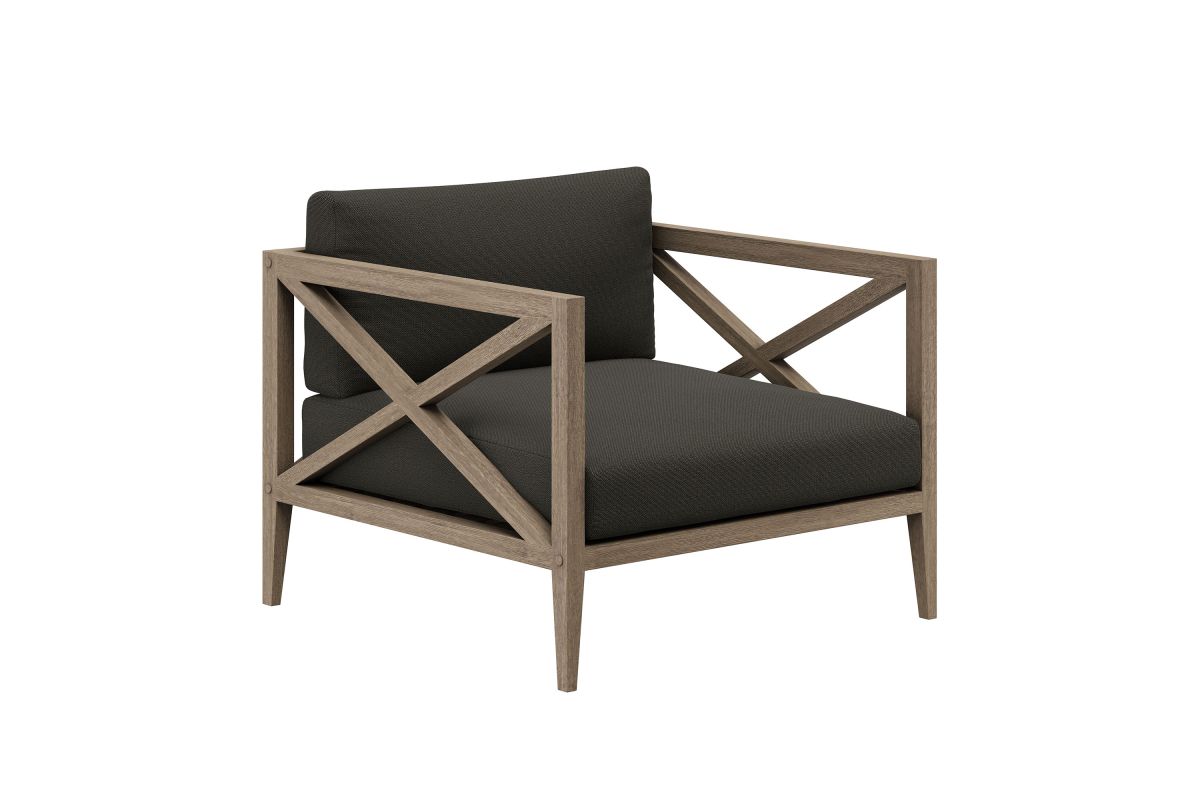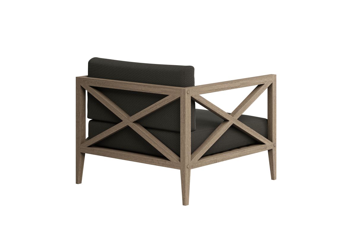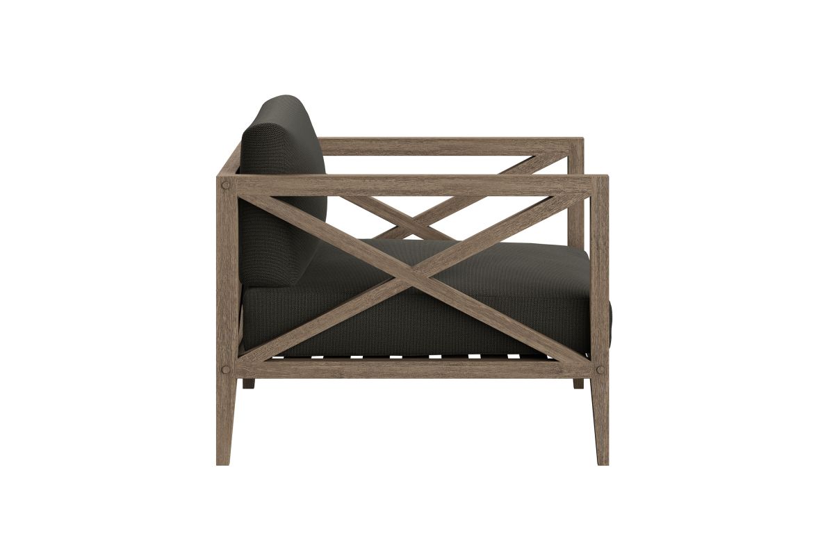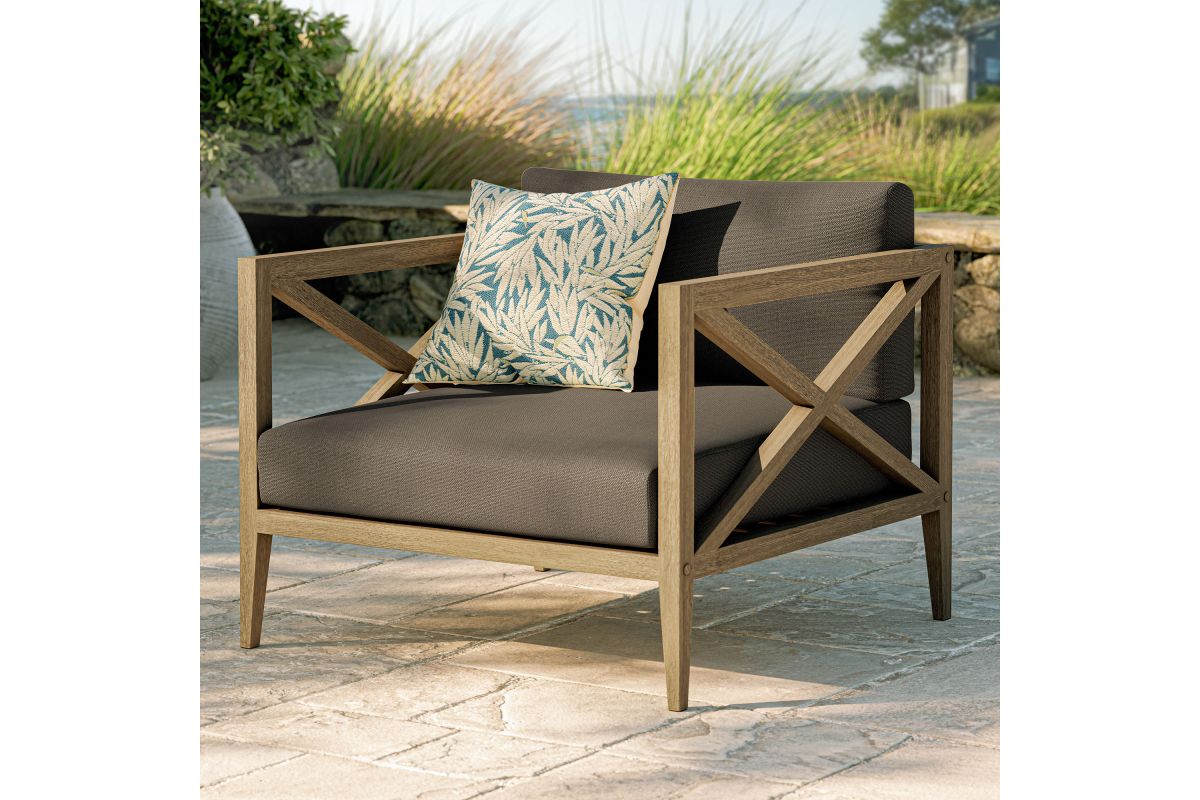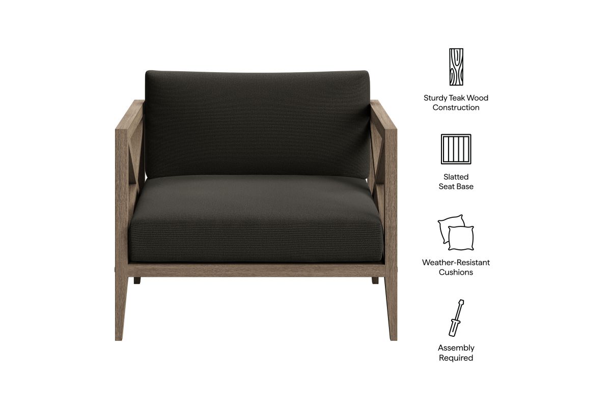 Soak in nature's beauty with the Northlake Outdoor Lounge Chair, a stylish and comfortable addition to any outdoor space. Crafted from sturdy teak wood, this extra-wide patio chair features a distinctive cross-back design for enhanced support and a refined aesthetic. The slatted seat base ensures durability and airflow, while the plush, all-weather cushions offer water-resistant, fade-resistant, and quick-drying performance for year-round comfort. Designed for balconies, patios, porches, and poolside lounging, the Northlake Teak Accent Chair blends timeless craftsmanship with modern outdoor luxury. Includes non-marking floor glides for added protection. Assembly required. Weight Capacity: 500 lbs.