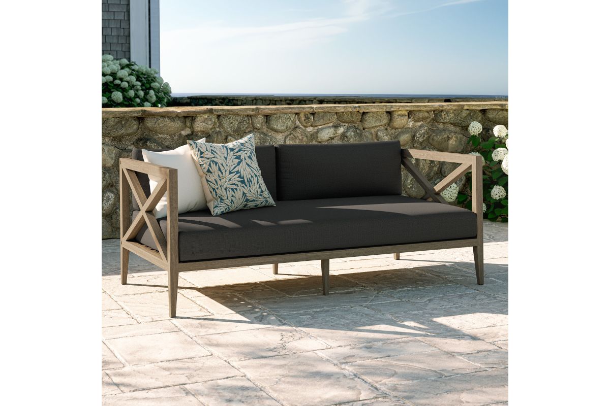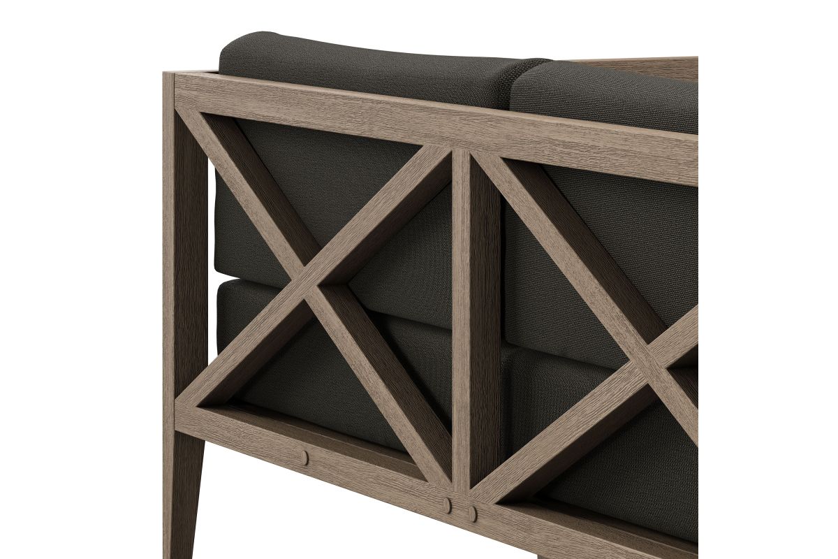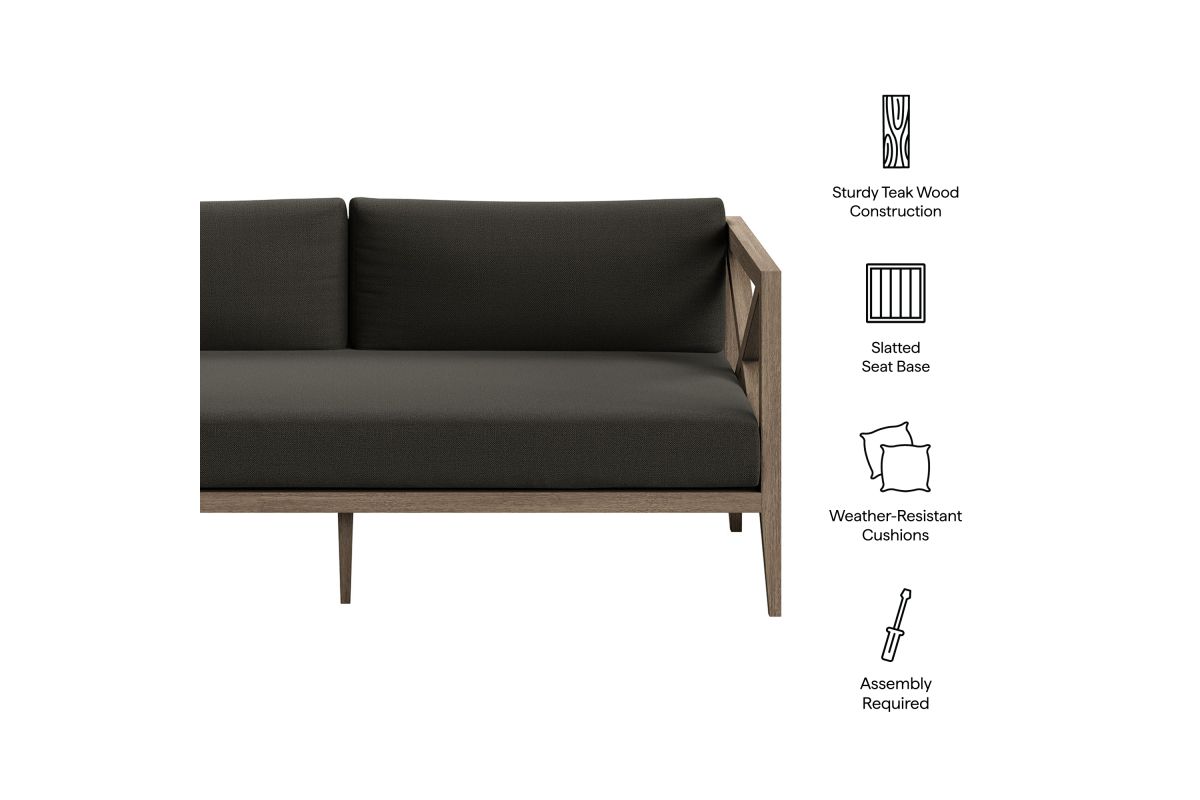 Soak in nature's beauty with the Northlake Outdoor Loveseat, a stylish and comfortable addition to any outdoor space. Crafted from sturdy teak wood, this 2-seater outdoor couch features a distinctive cross-back design for enhanced support and a refined aesthetic. The slatted seat base ensures durability and airflow, while the plush, all-weather cushions offer water-resistant, fade-resistant, and quick-drying performance for year-round comfort. Designed for patios, porches, balconies, and garden lounges, the Northlake Teak Patio Loveseat blends timeless craftsmanship with modern outdoor luxury. This patio furniture collection includes non-marking floor glides for added protection. Assembly required. Weight Capacity: 500 lbs.