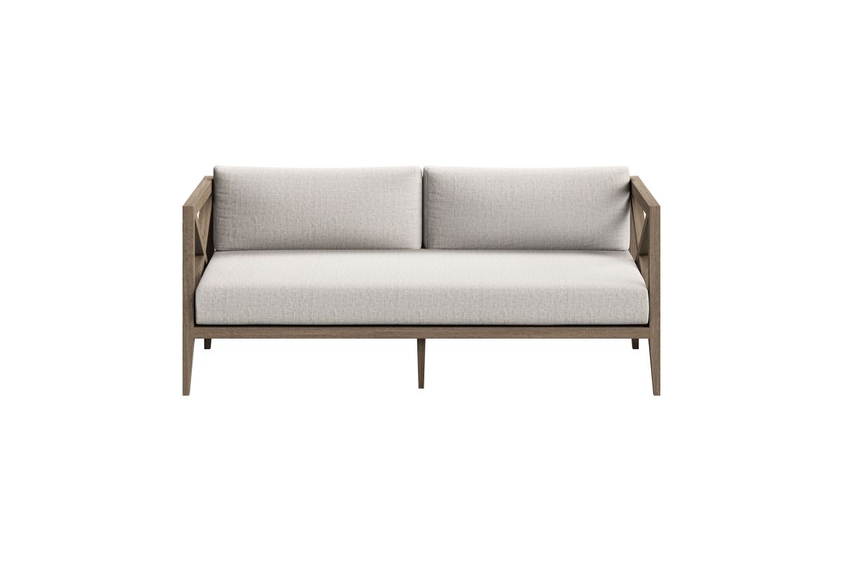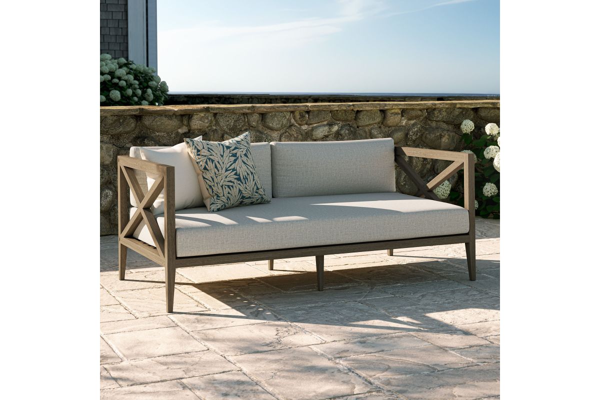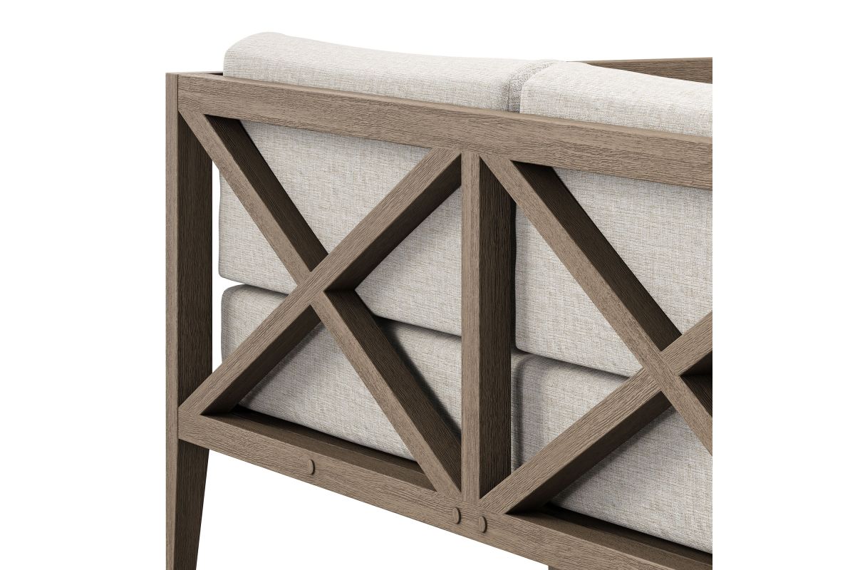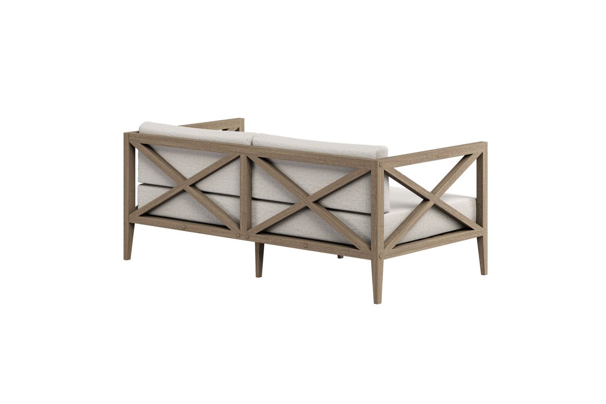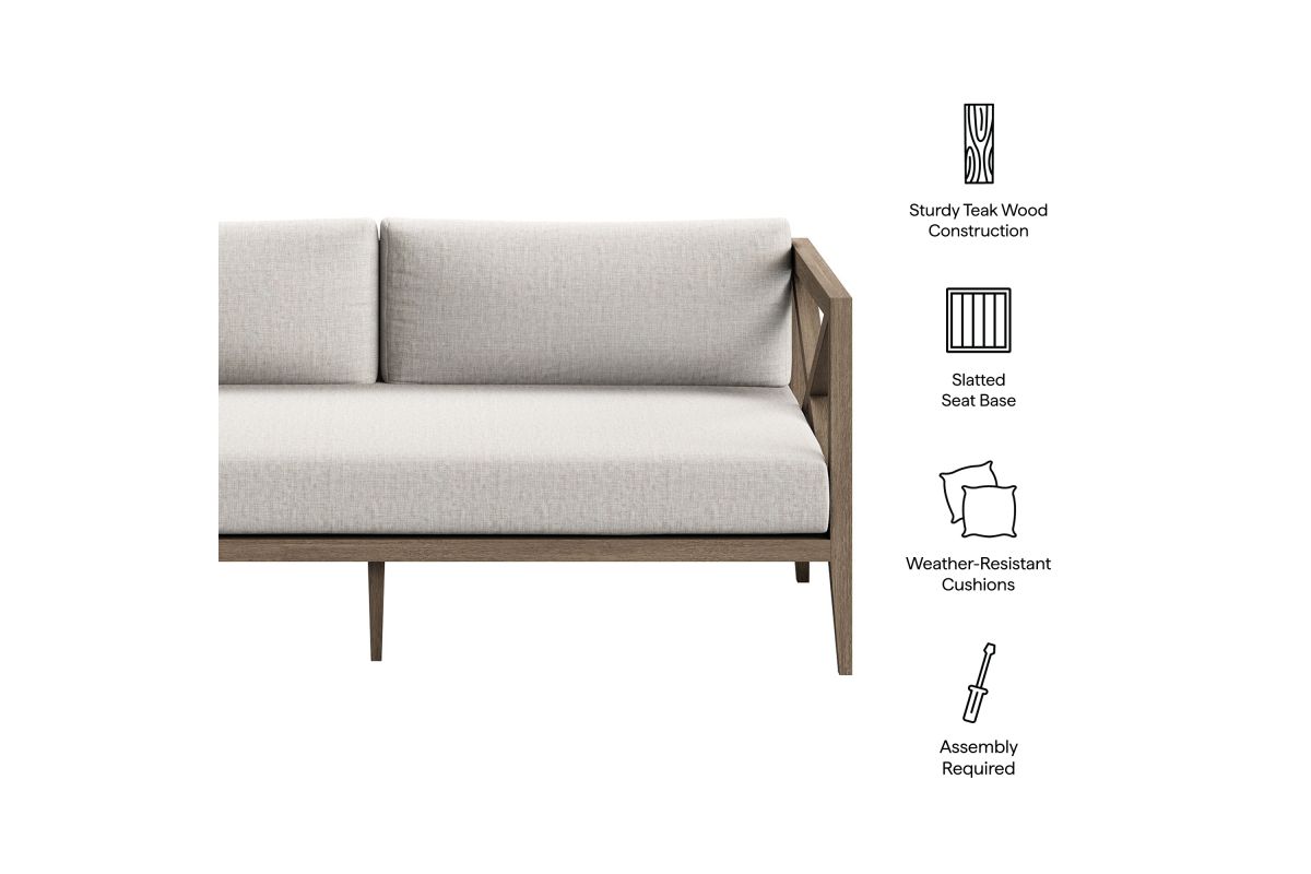 Soak in nature's beauty with the Northlake Outdoor Loveseat, a stylish and comfortable addition to any outdoor space. Crafted from sturdy teak wood, this 2-seater outdoor couch features a distinctive cross-back design for enhanced support and a refined aesthetic. The slatted seat base ensures durability and airflow, while the plush, all-weather cushions offer water-resistant, fade-resistant, and quick-drying performance for year-round comfort. Designed for patios, porches, balconies, and garden lounges, the Northlake Teak Patio Loveseat blends timeless craftsmanship with modern outdoor luxury. This patio furniture collection includes non-marking floor glides for added protection. Assembly required. Weight Capacity: 500 lbs.