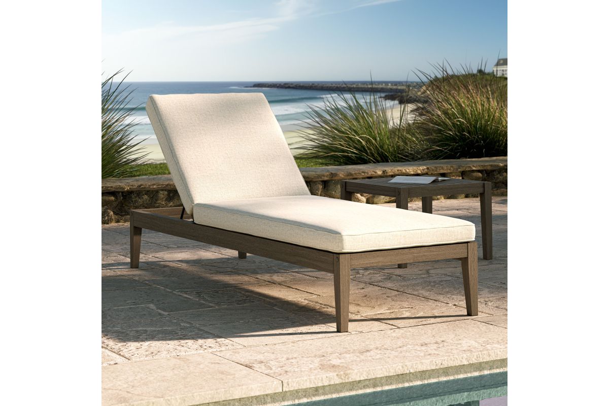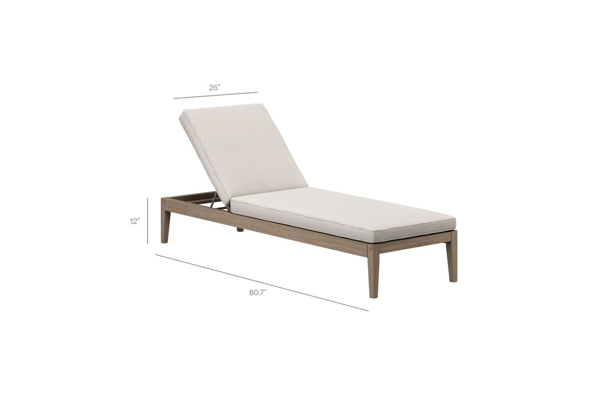 Soak in nature's beauty as you recline with the Northlake Outdoor Chaise Lounge. Crafted from durable teak wood, this sleek poolside lounger features a slatted seat for breathability and a backrest accented by a distinctive cross-back frame for added support. Designed for ultimate relaxation, the adjustable backrest offers three reclining positions, allowing you to sit upright, lounge back, or lay flat. The plush, weather-resistant cushion provides water-resistant, fade-resistant, and quick-drying comfort for year-round outdoor use. Whether by the pool, on the patio, or anywhere under the sun, the Northlake Chaise Lounge blends timeless craftsmanship with modern convenience. Assembly required. Weight Capacity: 278 lbs.