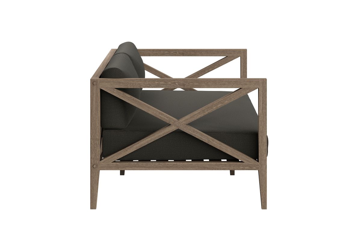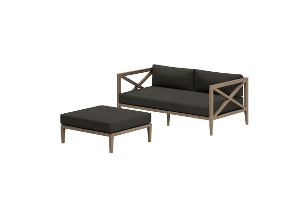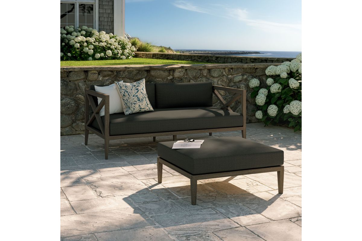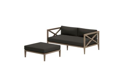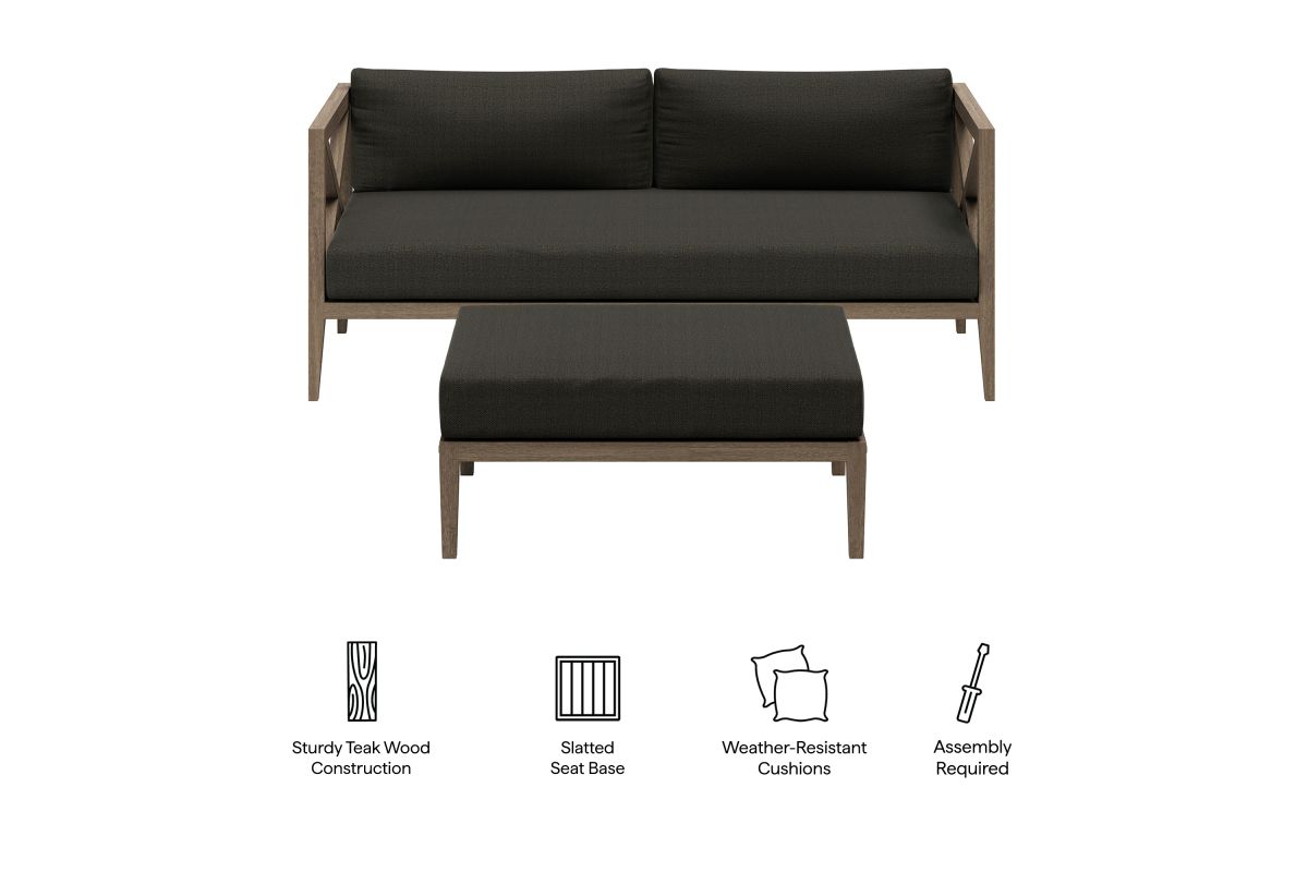 Soak in nature's beauty with the Northlake 2-Piece Outdoor Furniture Set, which includes a stylish loveseat and a matching ottoman. Both pieces are crafted from durable teak wood, making it perfect for outdoor use. The slatted bottoms on the loveseat and ottoman provide durability and encourage airflow, ensuring long-lasting comfort. The plush, all-weather cushions are water-resistant, fade-resistant, and quick-drying, offering comfort through every season. The loveseat features a distinctive cross-back frame for enhanced support and a refined aesthetic, while the ottoman can serve as extra seating, a footrest, or even a coffee table. Designed for patios, porches, balconies, and garden lounges, this set blends timeless craftsmanship with modern outdoor luxury. Includes non-marking floor glides for added protection. Assembly required.