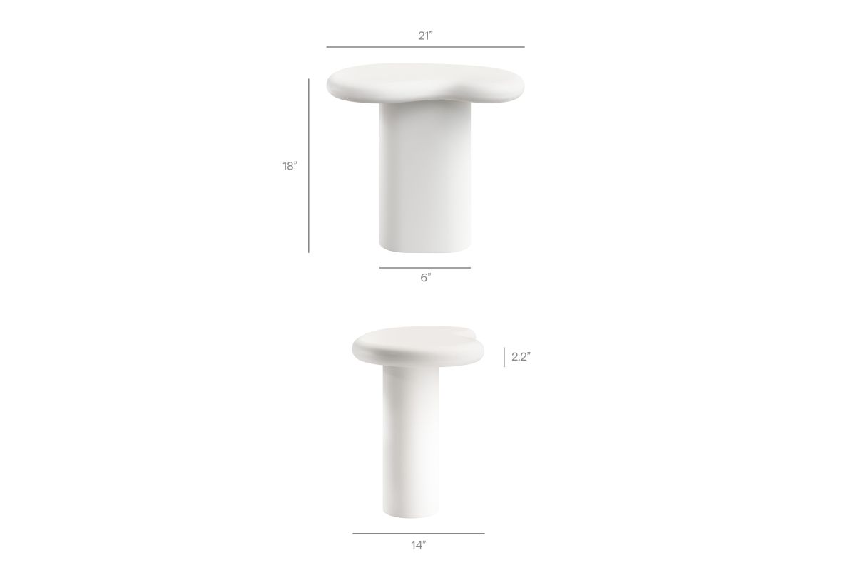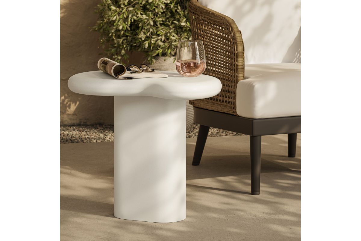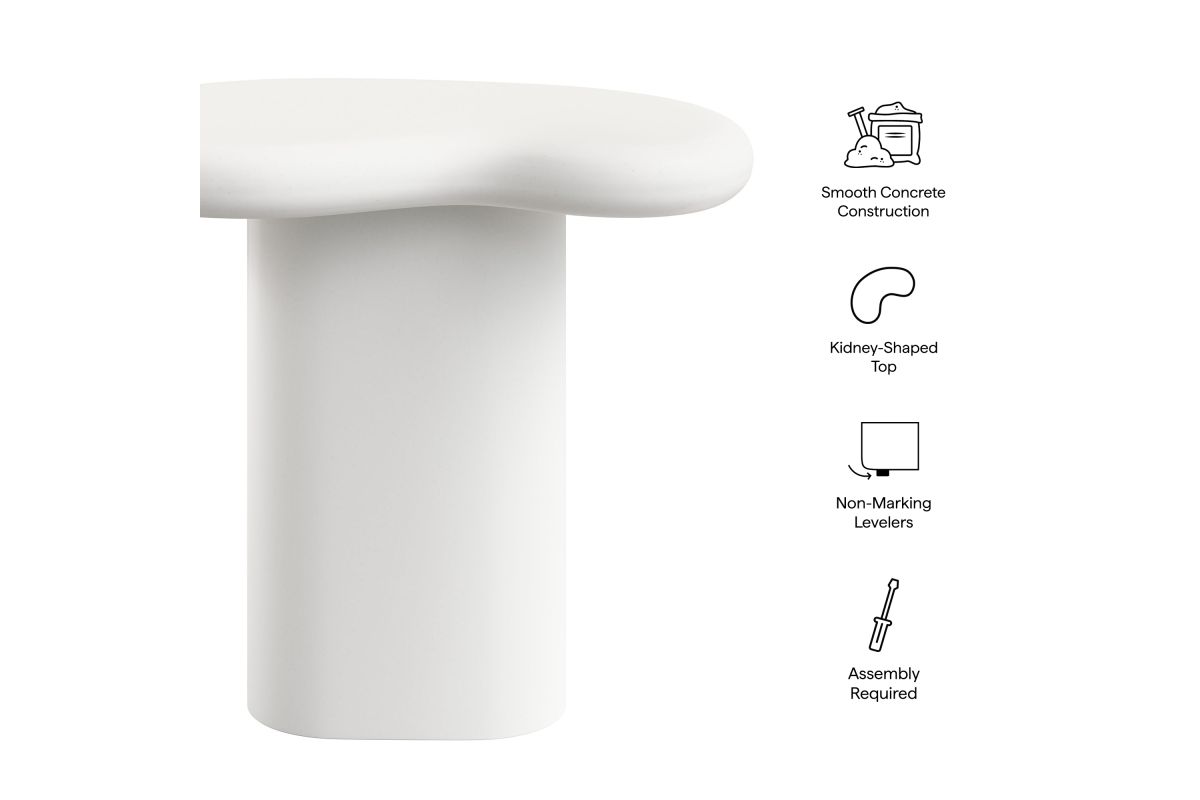 Add a touch of modern artistry to any space with the Elowen Side Table. Designed with a soft kidney-shaped top and a sturdy pedestal base, this concrete side table has a smooth finish and a clean, sculptural look that feels right at home indoors or outdoors. Style it as an accent end table beside a sofa, use it as an outdoor side table on the patio, or set it poolside for drinks, books, and sun essentials. Built from durable concrete, Elowen feels solid and steady, while non-marking levelers help protect floors and keep it balanced on uneven surfaces. Assembly required. Weight Capacity: 230 lbs.