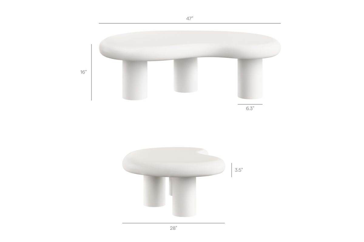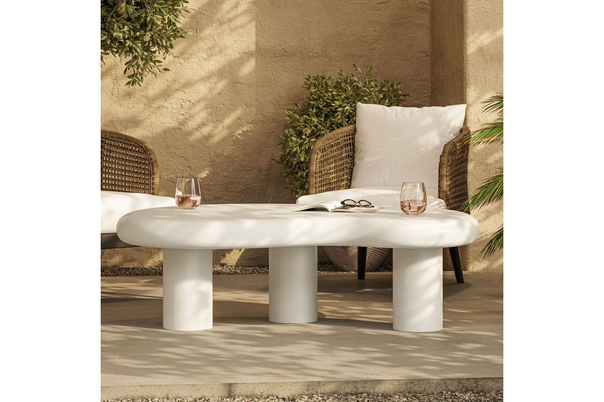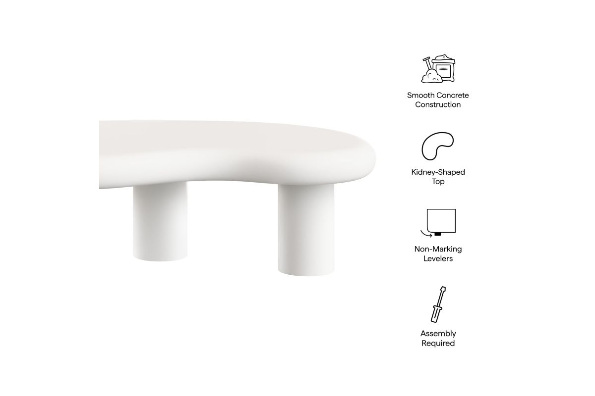 Add a touch of modern artistry to any space with the Elowen Coffee Table. Designed with a soft kidney-shaped top and sturdy pedestal legs, this concrete coffee table has a smooth finish and a clean, sculptural look that feels right at home indoors or outdoors. Style it as a living room centerpiece in front of a sofa, use it as an outdoor coffee table on the patio, or set it poolside as a low table for drinks, books, and sun essentials. Built from durable concrete, Elowen feels solid and steady, while non-marking levelers help protect floors and keep it balanced on uneven surfaces. Assembly required. Weight Capacity: 230 lbs.