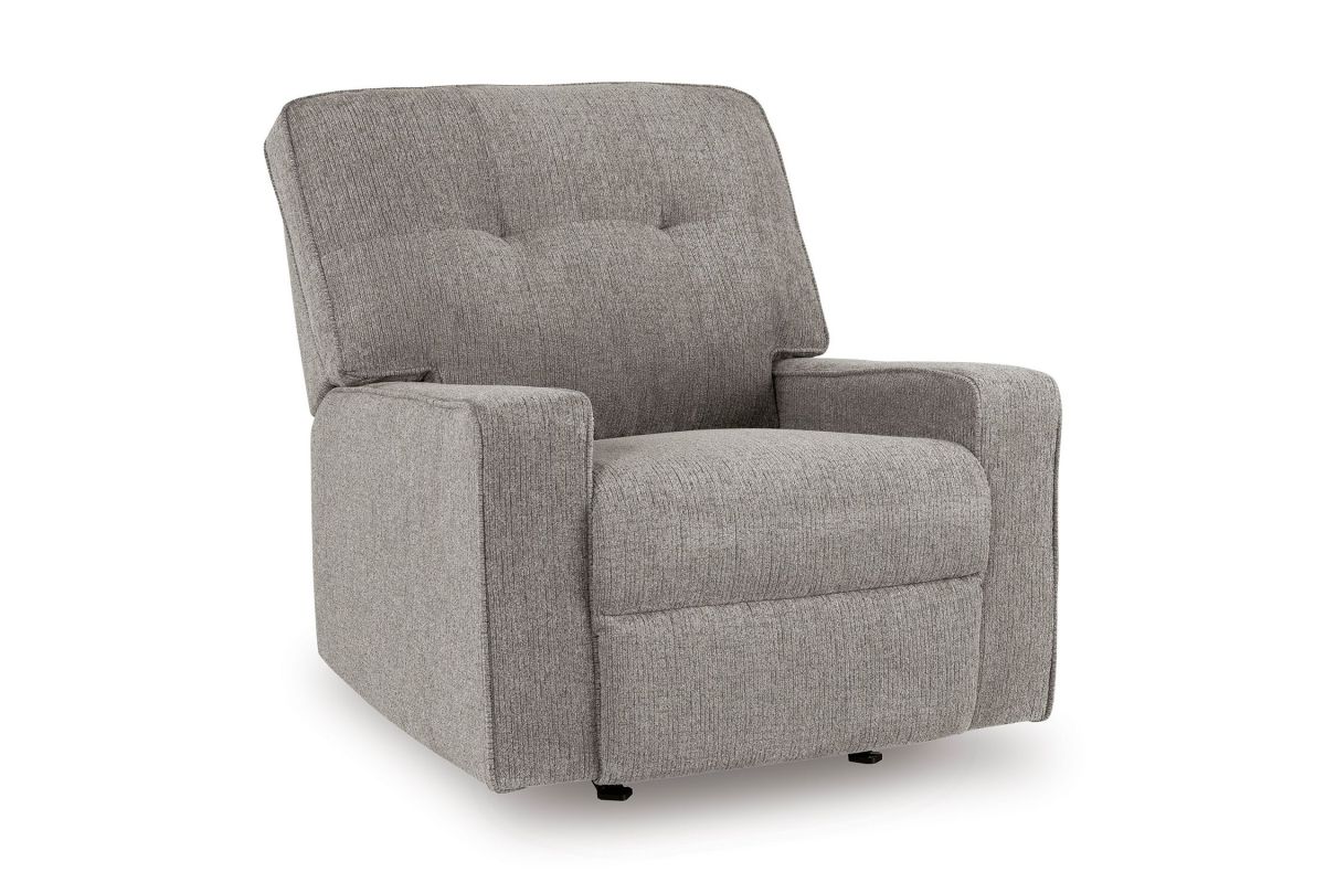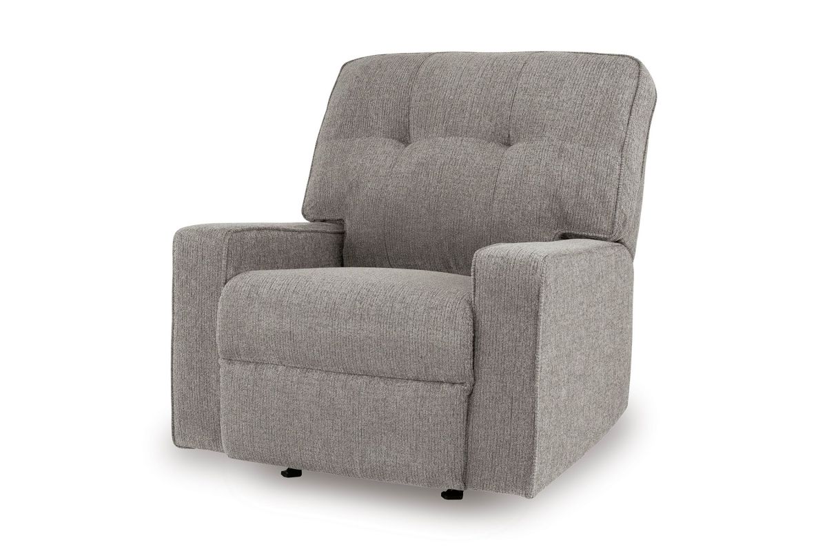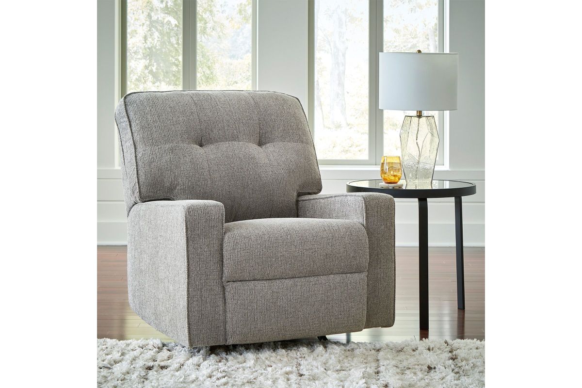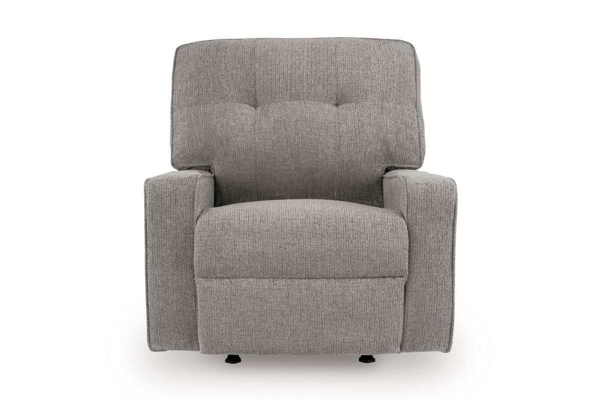 Sincere in its styling, the Luma Iron Rocker Recliner marries classic function with modern design elements for truly transitional appeal. Its track arms lend a contemporary vibe, while easy pull tab reclining ups the comfort level. And with the recliner's goes-with-anything neutral upholstery, styling is made simple. All that’s left for you to do is sit back and relax.