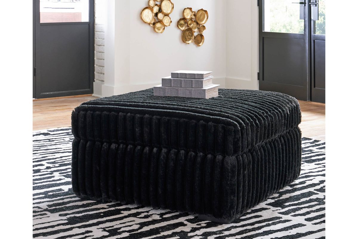 Wrapped in luxuriously soft jumbo corduroy, the Cozy Onyx Cocktail Ottoman takes cozy and inviting to a higher level. This sumptuous piece is perfect for unwinding after a long day, with an exceptionally textured cushion that delivers pure indulgence. Now all you have to do is kick back, sink in and relax.