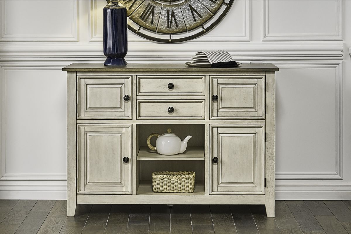 - 13-step Finish: The Smokey White & Peppercorn Finish features wire brushing and hand-applied distressing techniques that enhance the natural wood grain and adds a vintage character to this collection.
