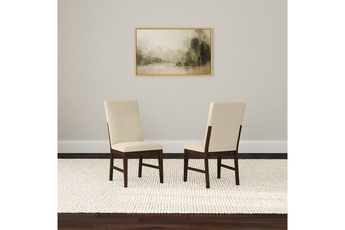 The Berkeley Upholstered Chairs provide enhanced comfort with padded seats and supportive backs. Upholstered in durable fabric and supported by a solid wood frame, this set offers both elegance and everyday durability. Perfect for extended dinners and entertaining.