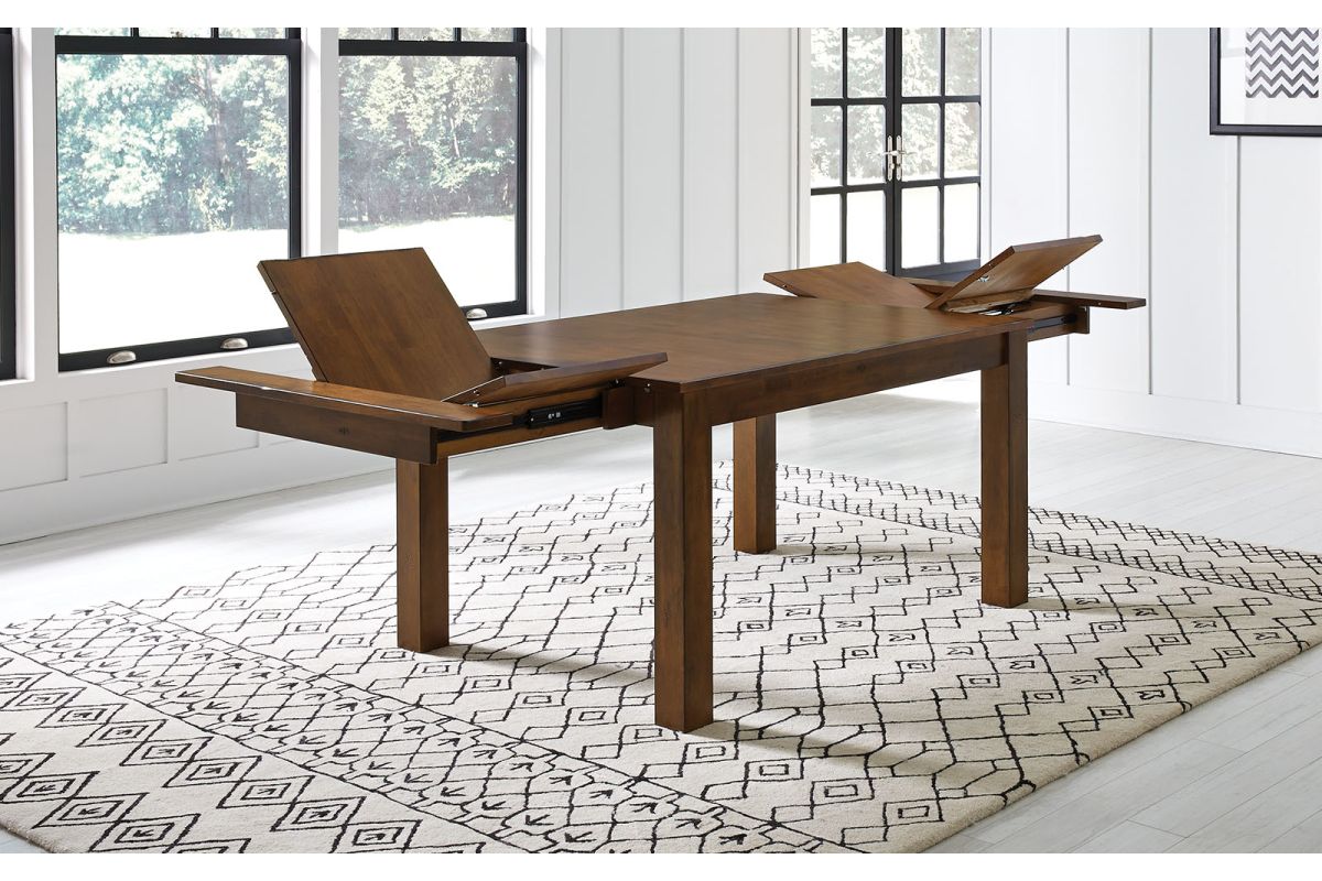 The Mariposa Dining Table combines classic design with practical metal glide functionality for effortless leaf extension. Built for durability, it provides ample space for gatherings.