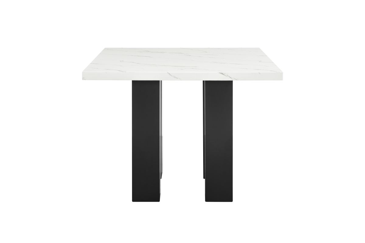 This counter height dining group brings modern sophistication to your dining space with its sleek, contemporary design. The eye-catching marble-like tabletop adds a touch of luxury, perfectly balanced by the sturdy, dark-finished base for a striking contrast. The comfortable, upholstered chairs in a soft, neutral tone complete the ensemble, offering both style and support for your dining experience. Perfect for intimate gatherings or casual dining, this set combines elegance and functionality, making it an ideal centerpiece for your dining room. Its versatile design effortlessly complements a range of decor styles, ensuring it fits seamlessly into any home.