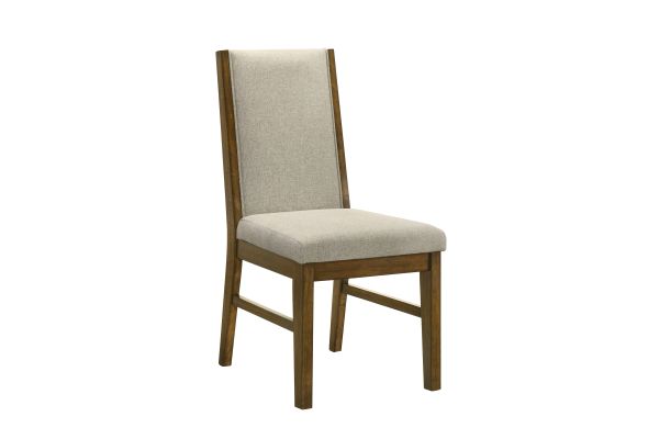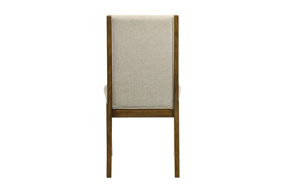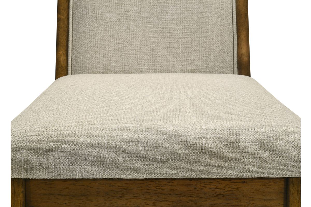 - Upholstered back with wood side detail