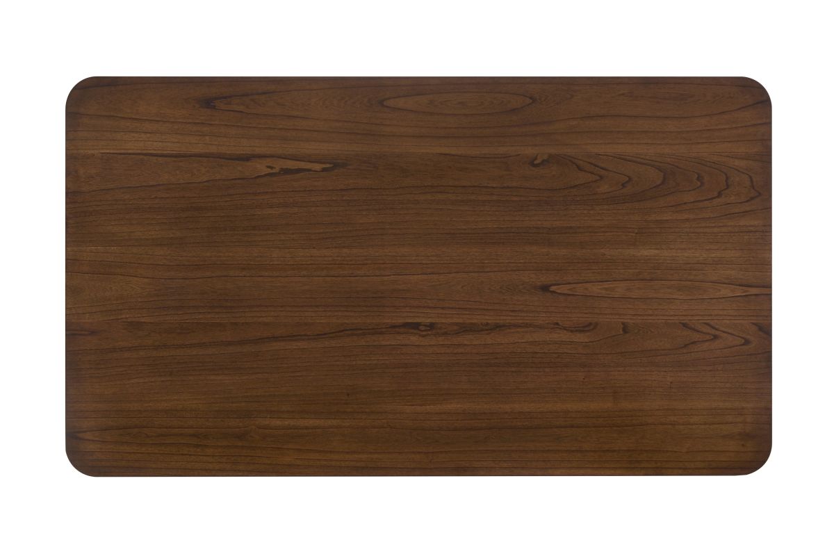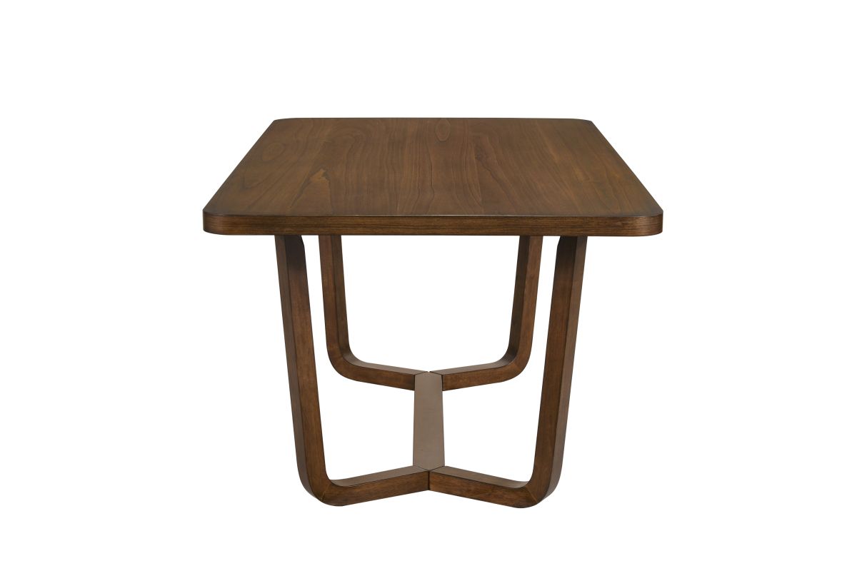 - Rectangular dining table with rounded corners and exclusive V-leg trestle base offers both stability and style