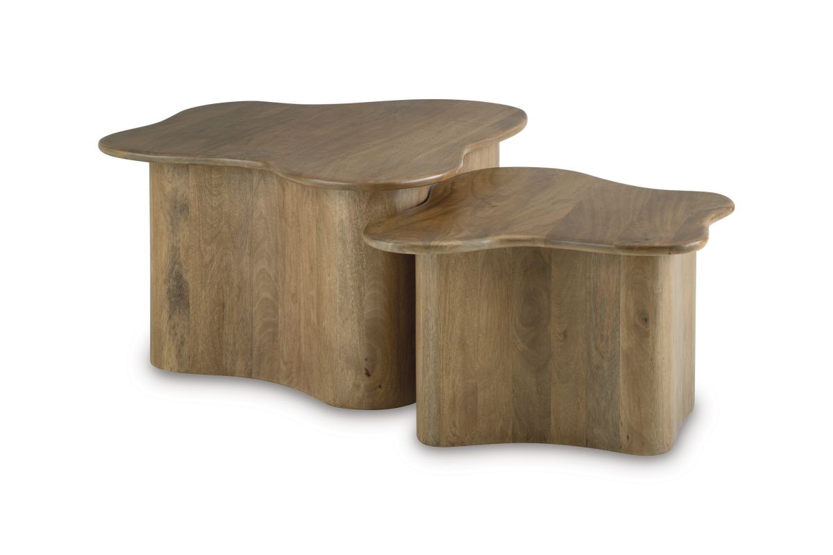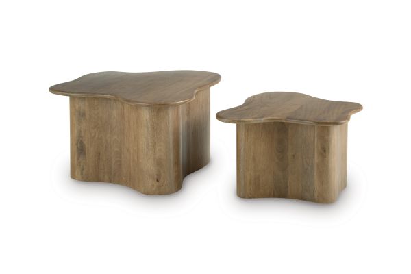 Organically beautiful, the Abeford accent coffee table set reflects your artistic eye for design. With captivating, abstract tabletops, this duo is a decidedly curated addition to your living space. Stage them separately to spread the love, or bunch them together to create an utterly cool central fixture for your seating area. Top the tables with your chicest decor, or let their creative approach to modern organic style speak for itself.