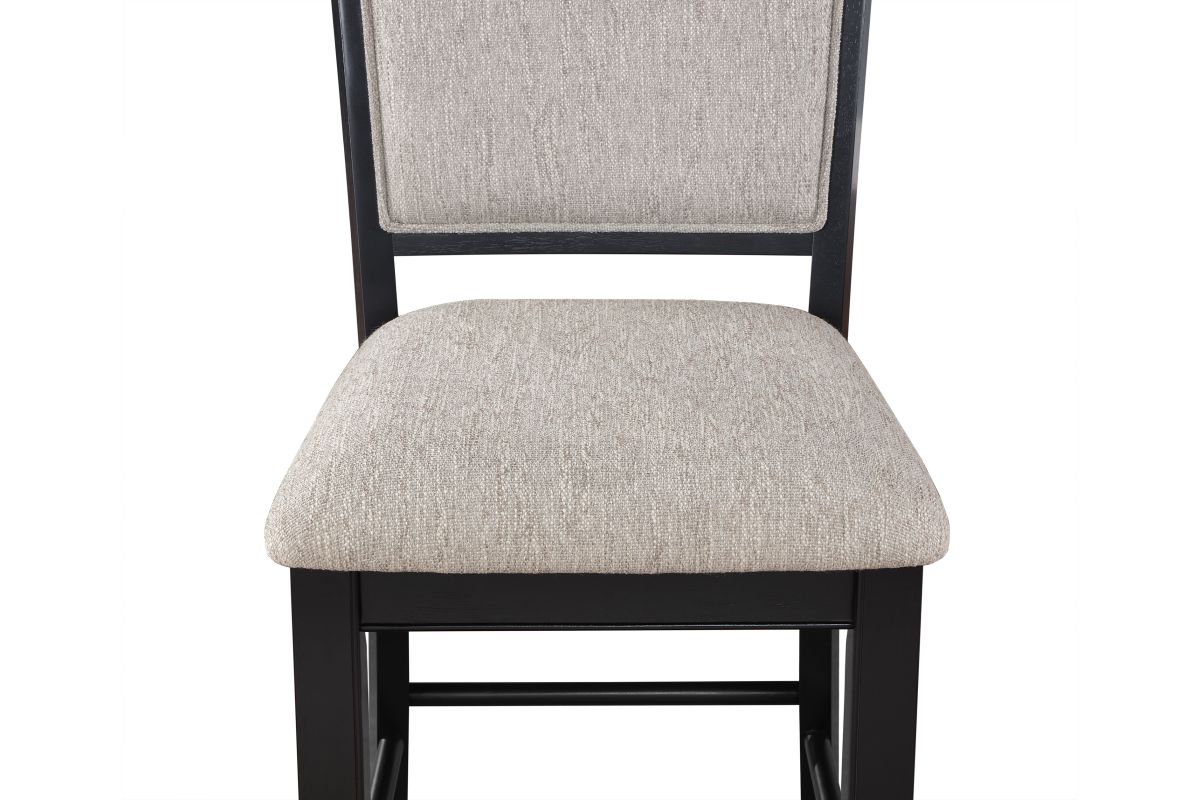Introduce a touch of contemporary sophistication to your dining area with this stunning counter height dining set. The centerpiece table boasts a chic, two-tone finish with a sleek, dark base and a beautifully textured gray tabletop with built-in turntable, offering a striking contrast that enhances any décor. Accompanying the table are four stylish chairs and a comfortable bench, all upholstered in a premium, soft fabric that ensures an inviting and relaxing dining experience. The robust wooden construction provides lasting durability and stability, while the modern design elements make this set a perfect blend of style and functionality. Ideal for both everyday meals and special gatherings, this set promises to transform your dining space into a stylish and welcoming haven.