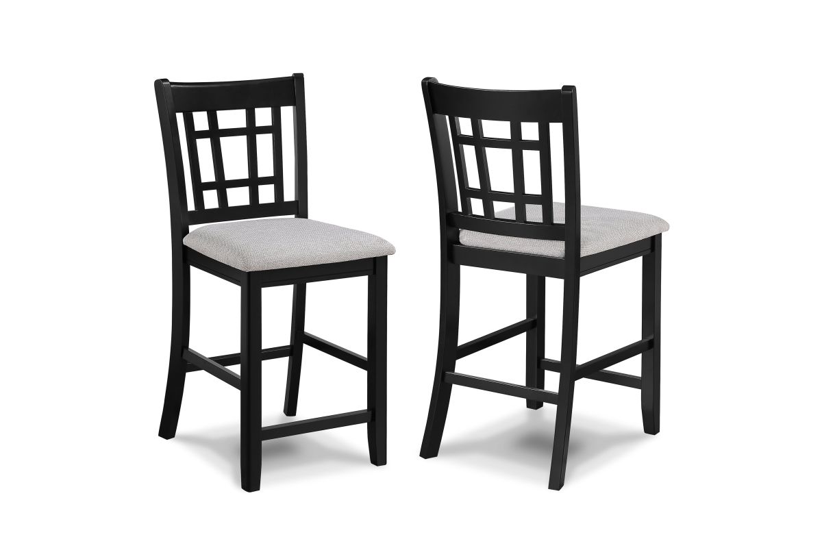 - Counter height chairs with sturdy lattice backs for comfort and support