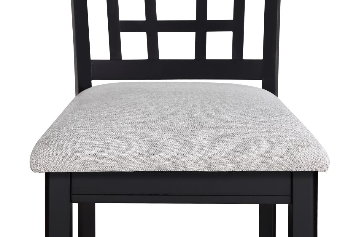 Discover practicality and style with our dining group. With a straightforward design, this set is perfect for everyday meals and casual gatherings. The grid-back chairs offer supportive seating, while the cushioned seats ensure comfort. With its under-table shelf, the table provides a handy spot for dining essentials.