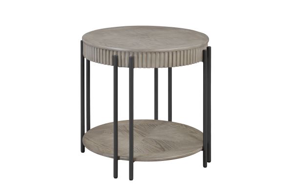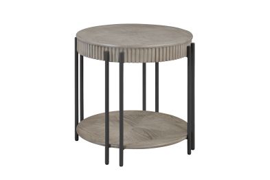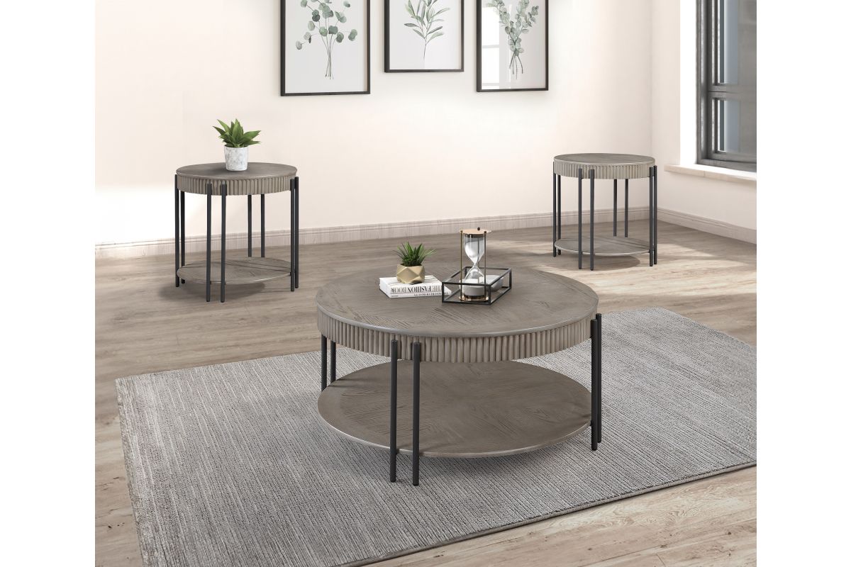 Elevate your living space with this contemporary end table, designed to blend seamlessly with modern and minimalist interiors.This end table features a sophisticated round tabletop with a subtle, textured finish that exudes understated elegance. The sleek black metal legs provide a striking contrast, offering both durability and a touch of industrial chic. The integrated lower shelves offer additional storage or display space, perfect for books, decorative items, or everyday essentials. With its clean lines and versatile design, this set promises to enhance your living room's ambiance, providing a stylish and functional focal point for any gathering or daily use.