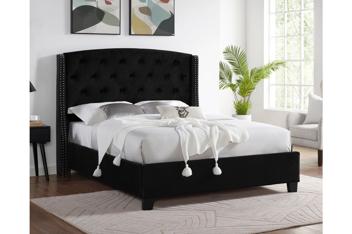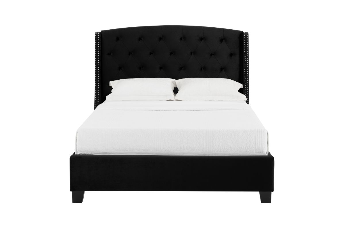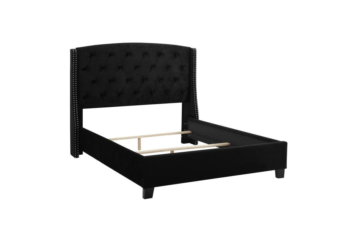 Experience the sophisticated charm and supreme comfort of the Eva Black Queen Upholstered Bed by Crown Mark, a perfect blend of contemporary elegance and high-quality craftsmanship designed to transform your bedroom into a serene haven. Imagine waking up each morning in a space that effortlessly balances modern aesthetics with timeless appeal — a sanctuary where luxury meets everyday comfort. The button-tufted headboard, adorned with striking nailhead trim along its graceful wingback silhouette, immediately commands attention while providing plush support for nightly reading or morning coffee. Set in a Black fabric, this bed smoothly complements a wide array of interior palettes, allowing you to refresh your decor without changing your anchor piece. Sturdy wooden legs ground the bed, guaranteeing reliable performance for years, and the tailored upholstery delivers a cozy yet polished finish that elevates any living environment.